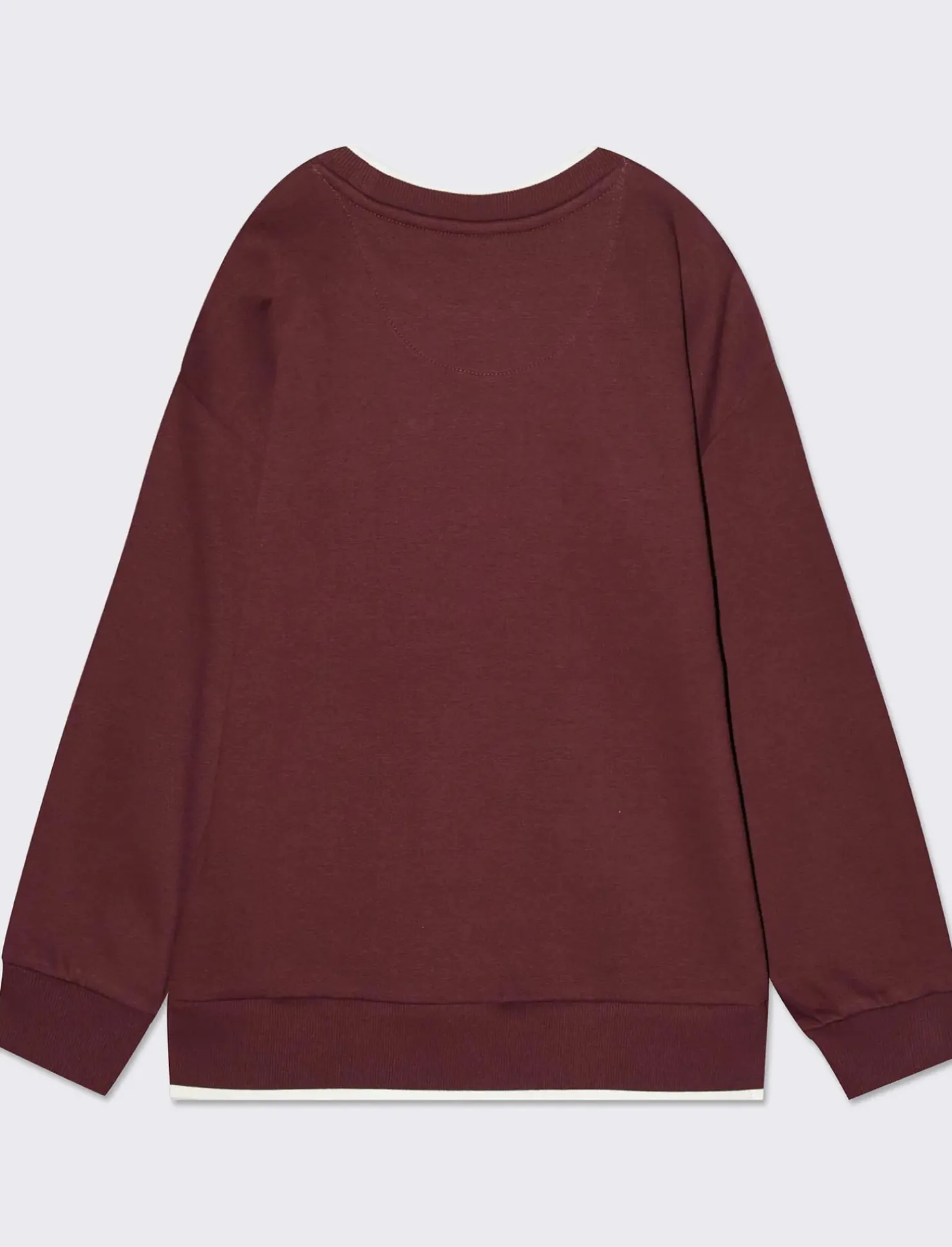 Piazza Italia Felpa girocollo over stile college con applicazioni – Bordeaux Rosso New