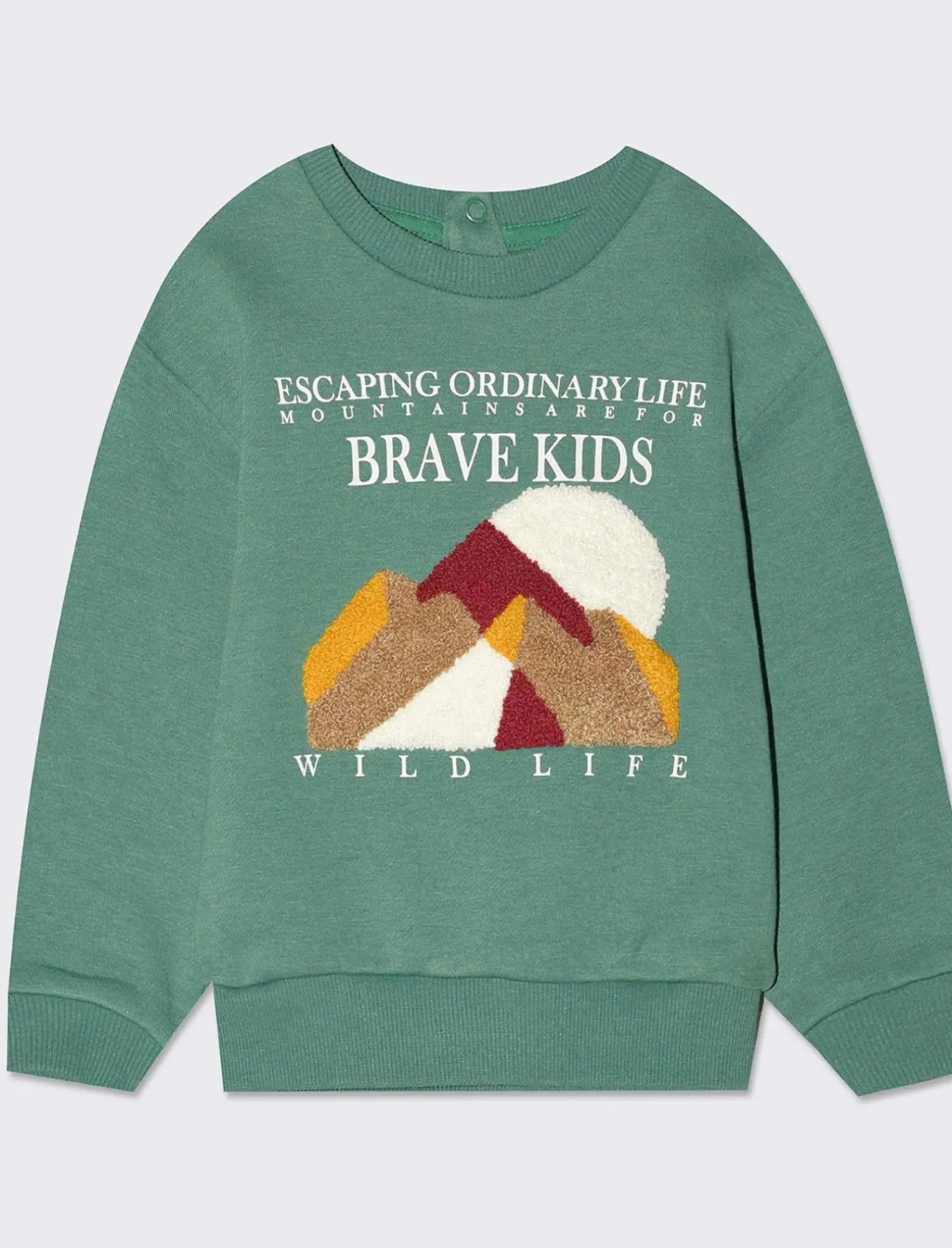 Felpa per bambini realizzata in morbido misto cotone, perfetta per tenere al caldo i più piccoli con stile. Caratterizzata da una divertente stampa frontale e un’originale applicazione sul retro, questa felpa è ideale per un look casual e alla moda. Il prodotto è di colore Verde