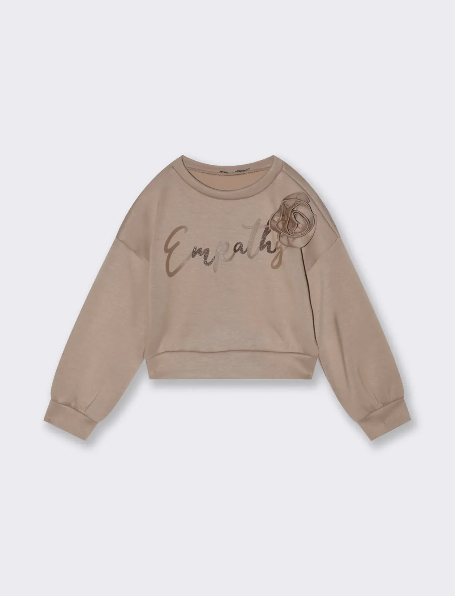 Piazza Italia Felpa in tessuto bielastico da bambina con stampa e fiore cucito sul davanti – biscotto Marrone New