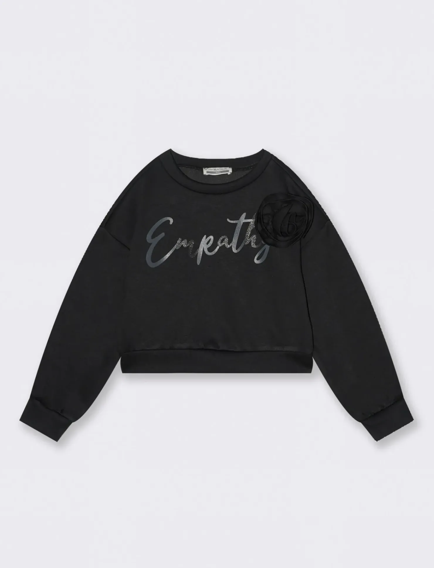 Piazza Italia Felpa in tessuto bielastico da bambina con stampa e fiore cucito sul davanti – Nero Cheap