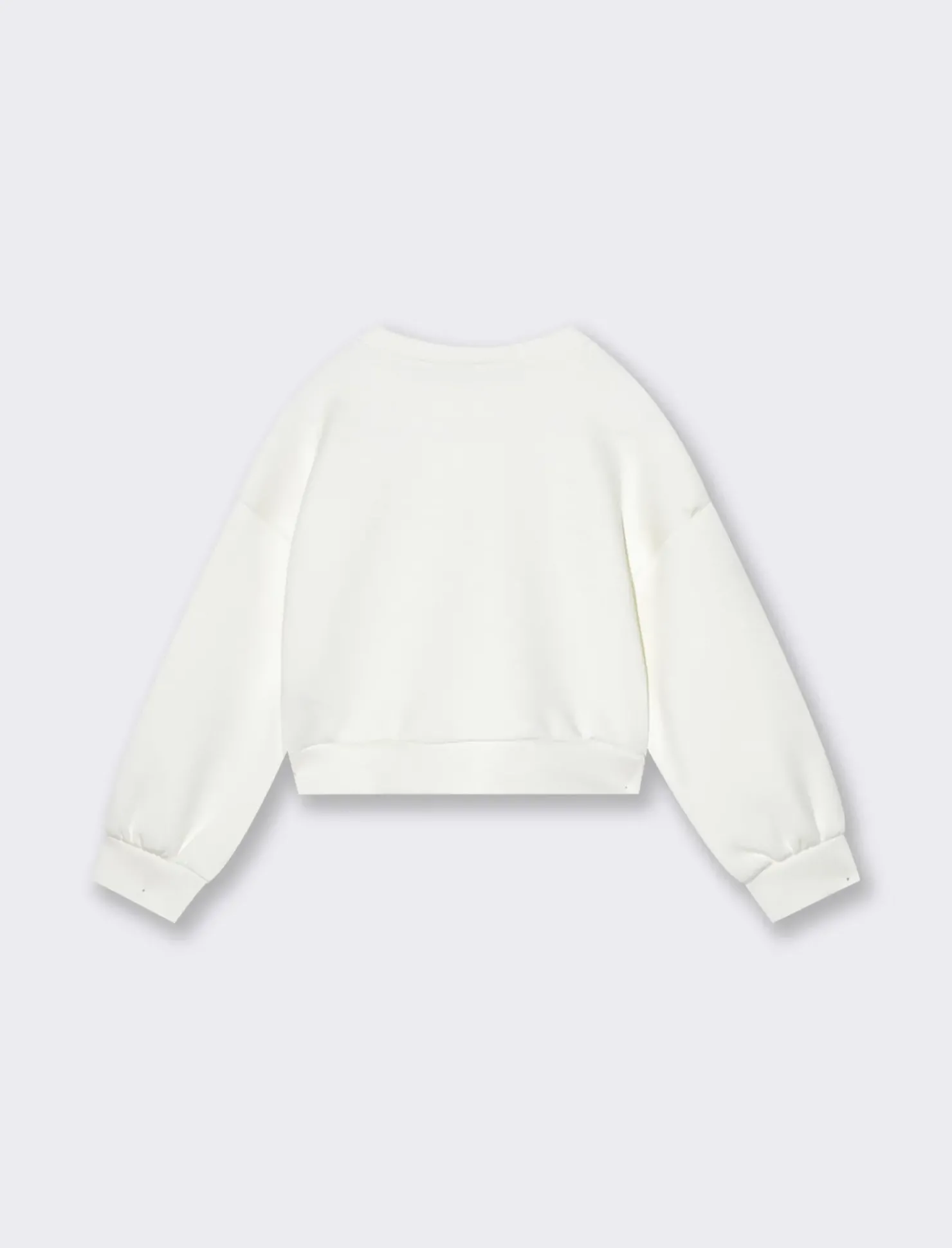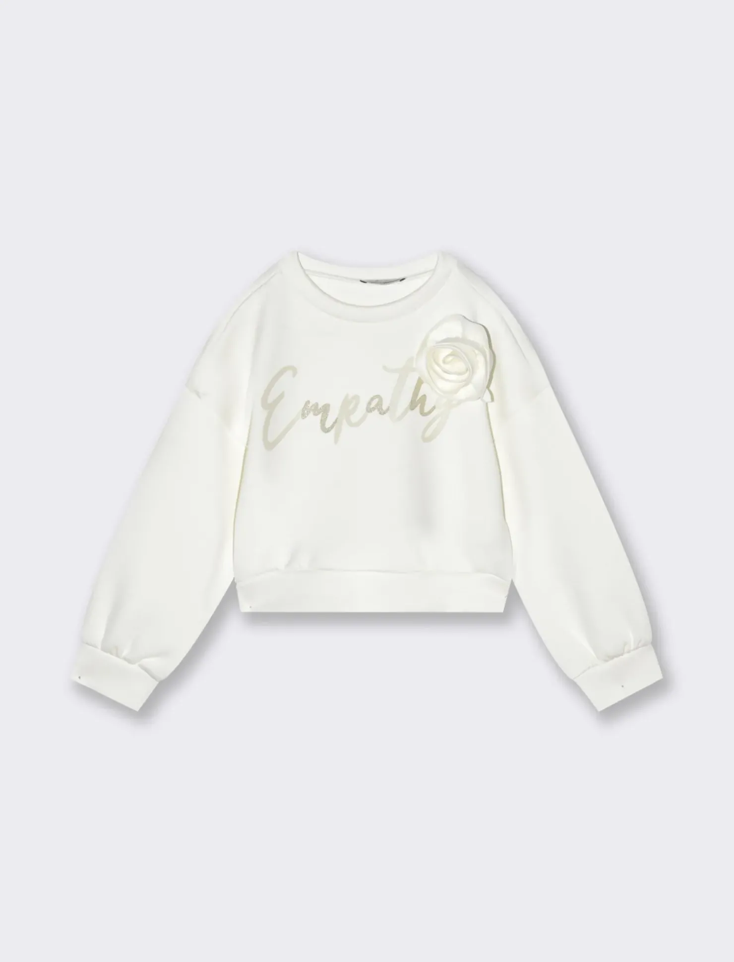 Piazza Italia Felpa in tessuto bielastico da bambina con stampa e fiore cucito sul davanti – sporco Bianco Discount
