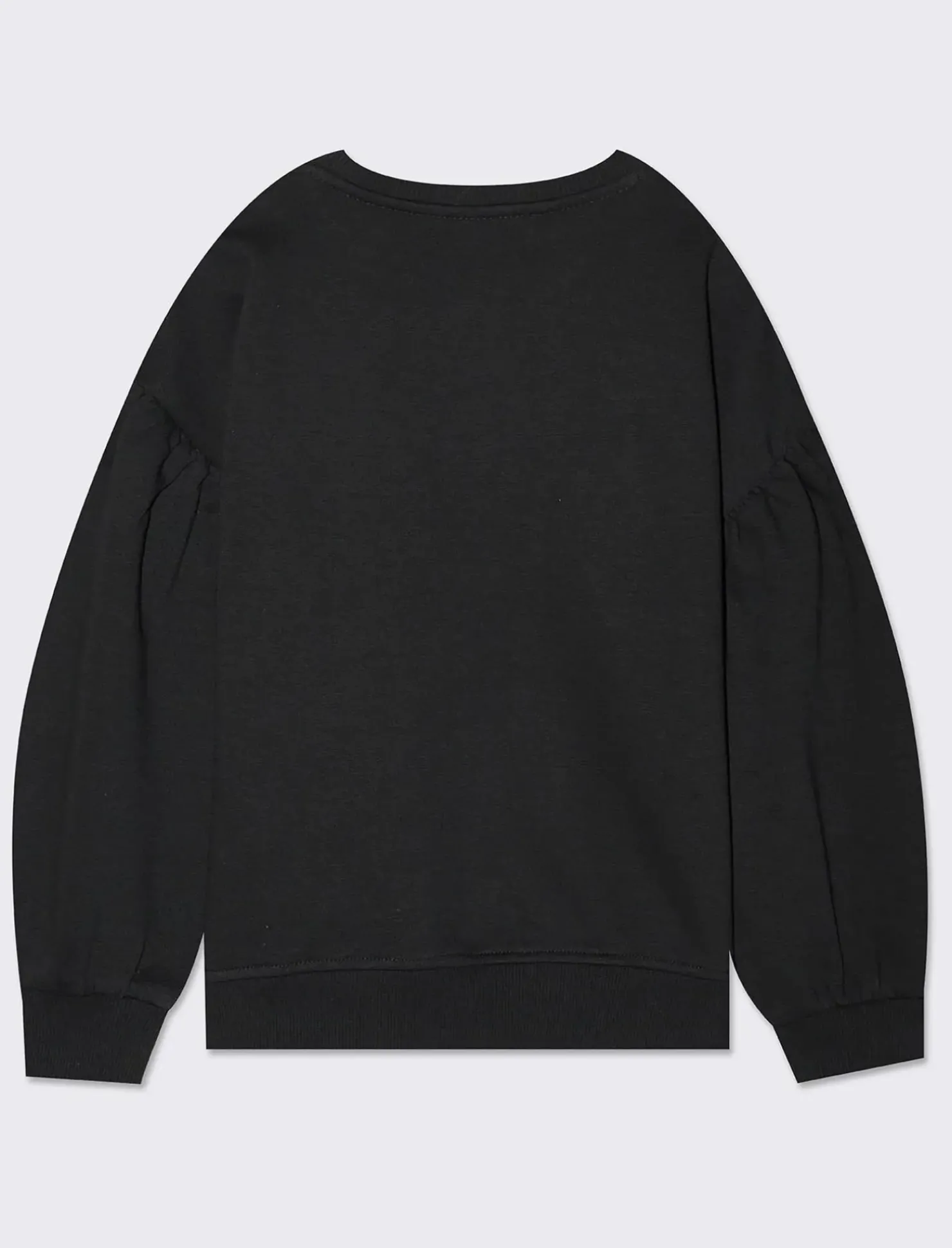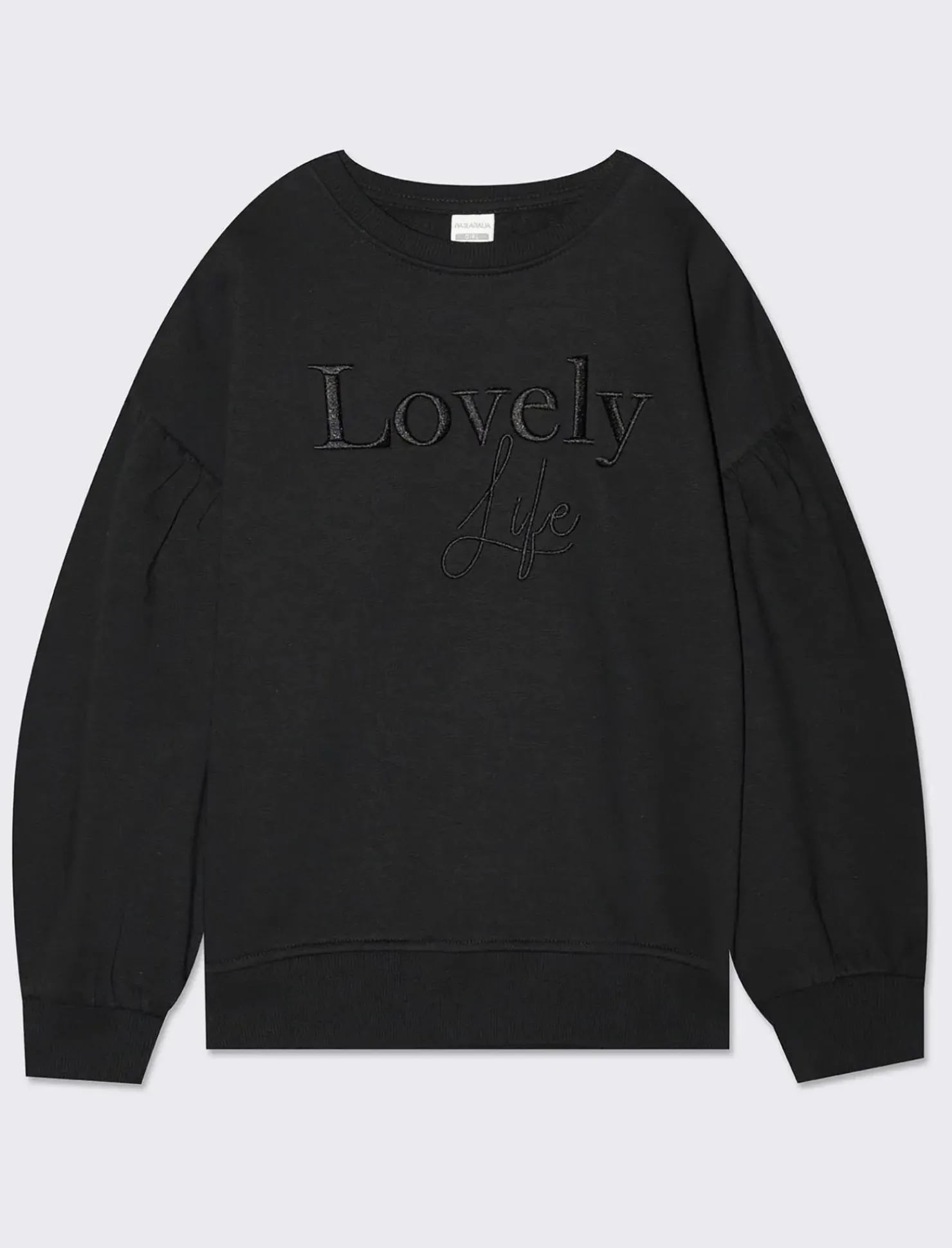 Piazza Italia Felpa manica lunga con lavorazione frontale del ricamo tono su tono – Nero Flash Sale