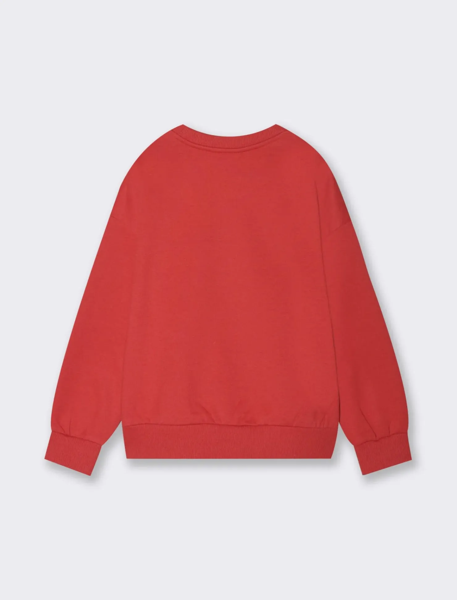 Felpa girocollo da bambina in fibra riciclata con stampa colorata e brillantinata con personaggio Stitch tema natalizio Il prodotto è di colore Rosso