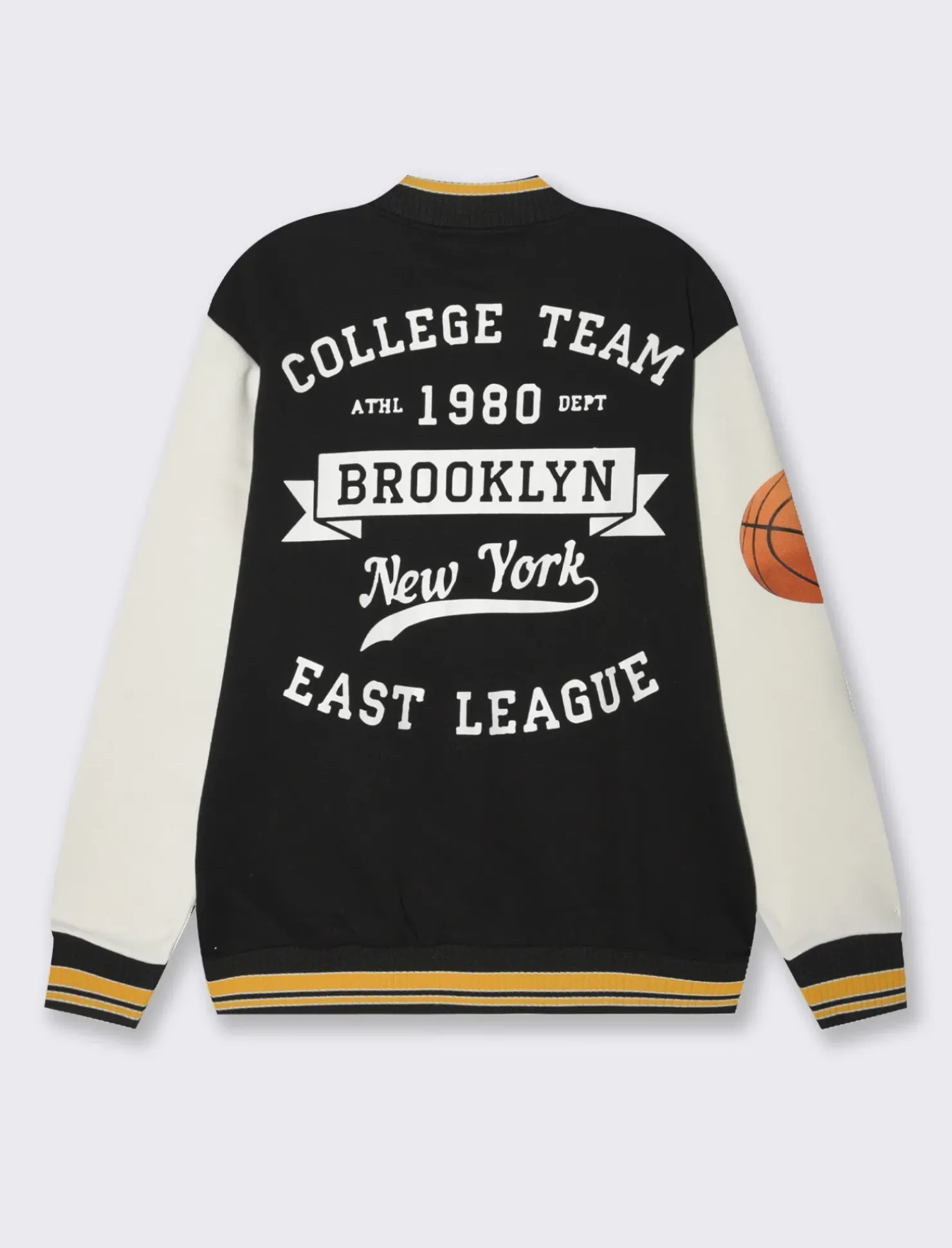 Felpa bomber varsity è il capo ideale per un look casual e alla moda. Realizzata in morbido tessuto, offre comfort e stile in ogni occasione. Le tasche a doppio filetto sui fianchi aggiungono praticità, mentre le toppe a contrasto donano un tocco di originalità. Gli orli a coste garantiscono una vestibilità perfetta, mentre la chiusura anteriore con bottoni a pressione rende questo bomber versatile, perfetto per ogni stagione. Il prodotto è di colore Nero