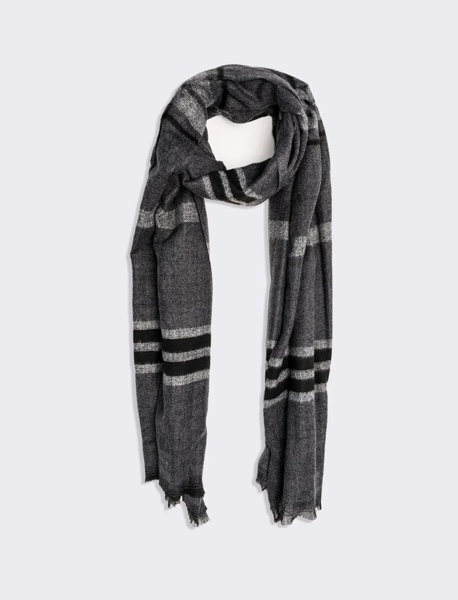 Il foulard uomo righe è un accessorio versatile e di tendenza, perfetto per completare ogni outfit. Realizzato in morbido tessuto, offre comfort e stile in ogni occasione. Le righe, eleganti e moderne, aggiungono un tocco di personalità, rendendolo ideale per un look casual o formale. Indossato attorno al collo o come decorazione su una borsa, questo foulard è un elemento chiave per esprimere il proprio stile unico. Il prodotto è di colore Grigio