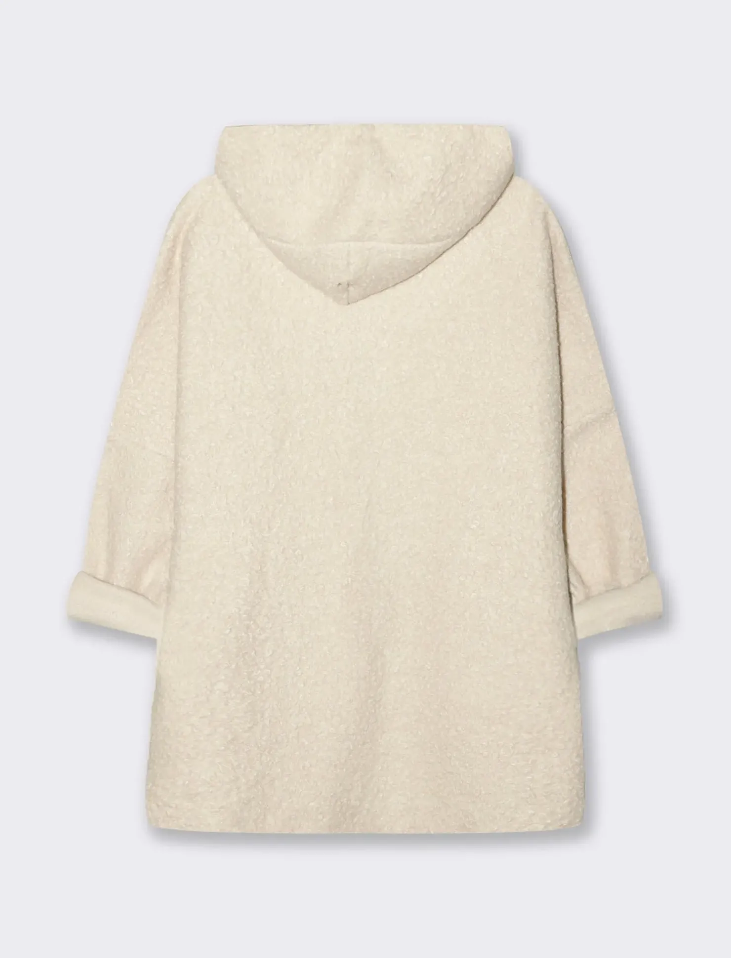 Giaccone corto da donna con bottoni, perfetto per affrontare le giornate più fredde con stile ed eleganza. Realizzato con materiali di alta qualità, presenta un collo alto e maniche reglan che conferiscono un tocco di modernità al capo. Ideale per completare ogni outfit in modo sofisticato e alla moda. Il prodotto è di colore Avorio