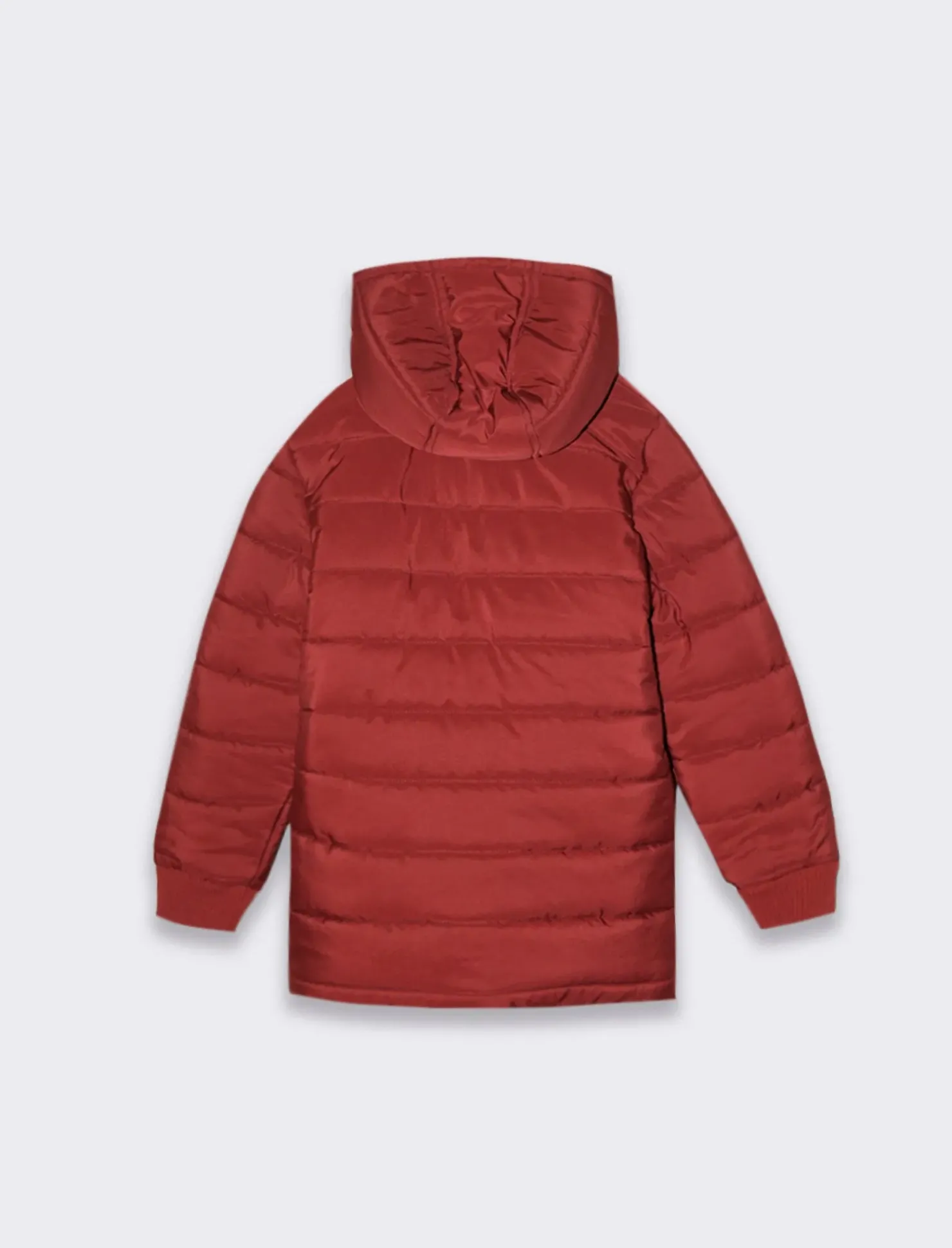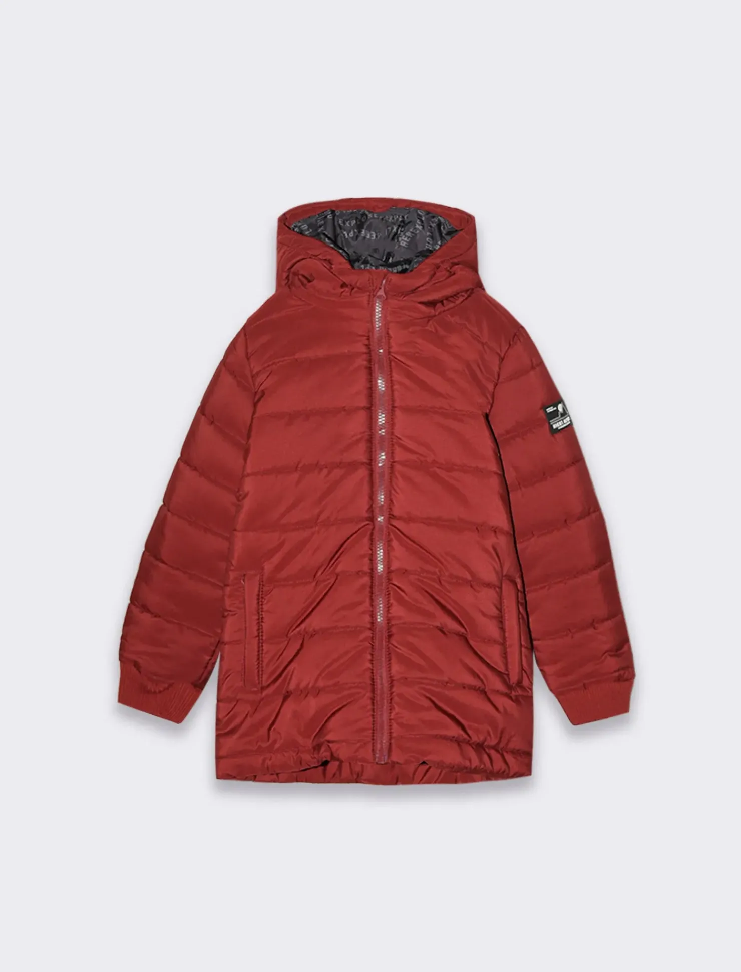 Giaccone tinta unita da bambino con cappuccio e apertura con zip frontale. Realizzato in tessuto resistente e confortevole, perfetto per proteggere i più piccoli durante le giornate più fredde. La fodera fantasia aggiunge un tocco di allegria e originalità al capo, rendendolo adatto sia per il tempo libero che per la scuola. Il prodotto è di colore Bordeaux