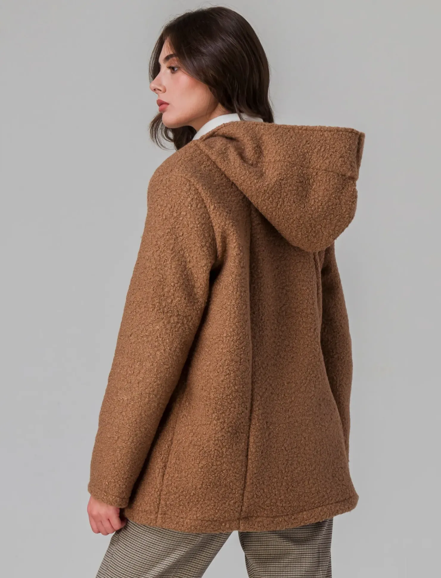 Giaccone con zip in tessuto boucle Il prodotto è di colore Cammello