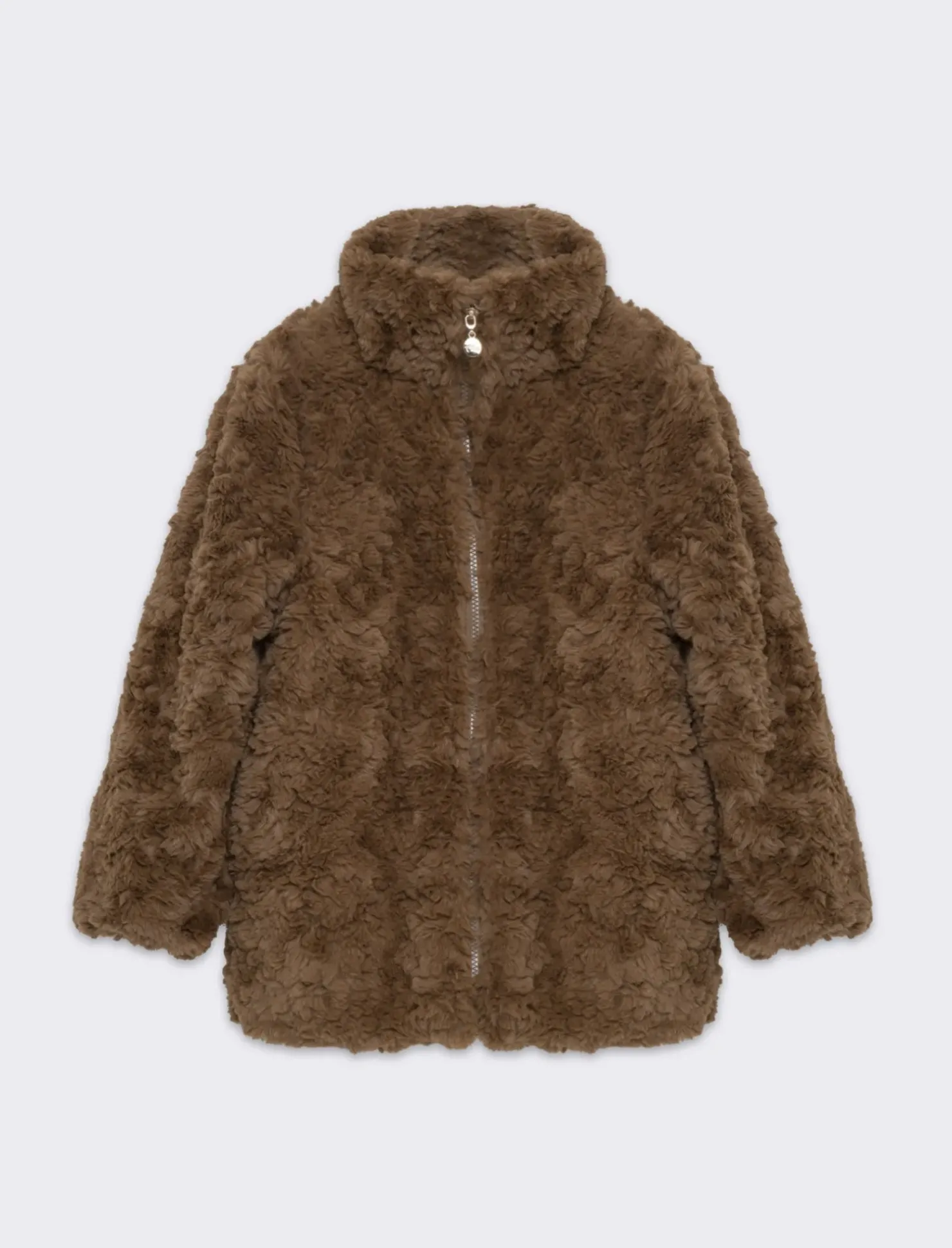 Il giaccone soffice da bambina è l’ideale per affrontare le giornate più fredde con stile e comfort. Caratterizzato da una vestibilità a ovetto, questo capo avvolge delicatamente il corpo, permettendo una libertà di movimento ottimale. Realizzato in un tessuto a pelo corto, è morbido al tatto e piacevole da indossare. La zip frontale assicura una chiusura pratica, mentre le tasche laterali offrono spazio per riporre piccoli tesori. Il prodotto è di colore Marrone