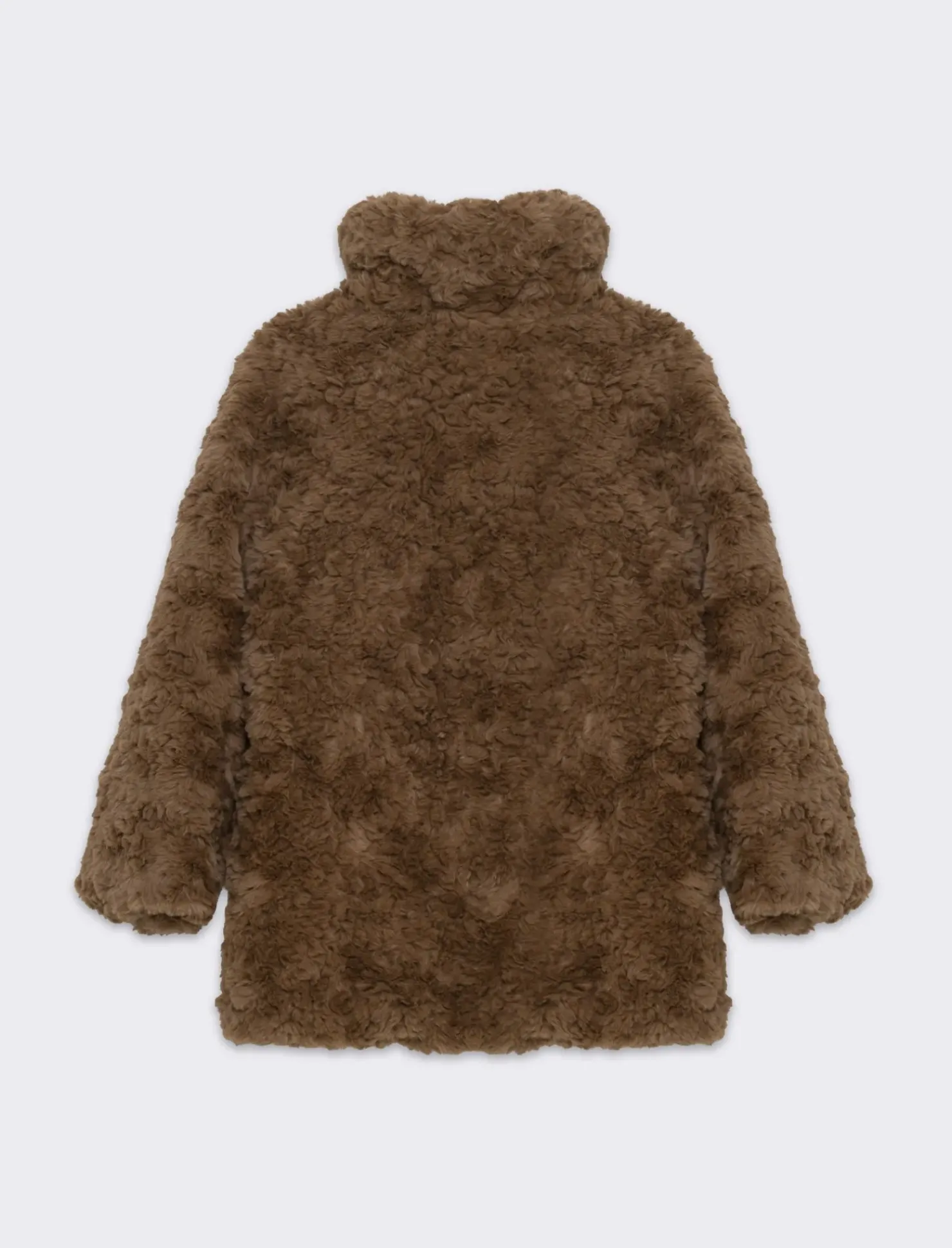 Piazza Italia Giaccone da bambina vestibilità ovetto,in tessuto pelo e fodera interna stampata – Marrone New