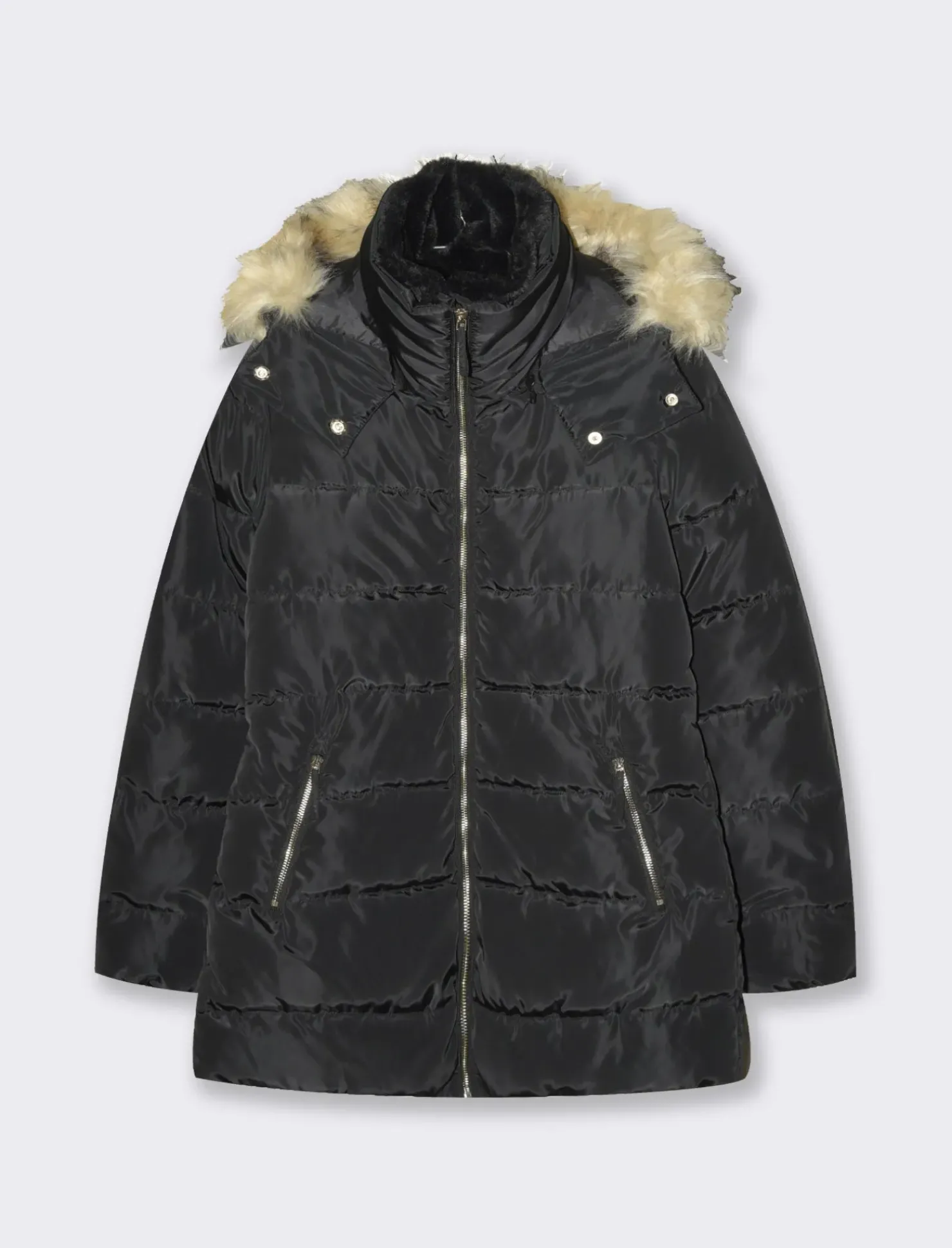 Piazza Italia Giaccone imbottito con cappuccio removibile con zip e cappuccio – Nero Shop