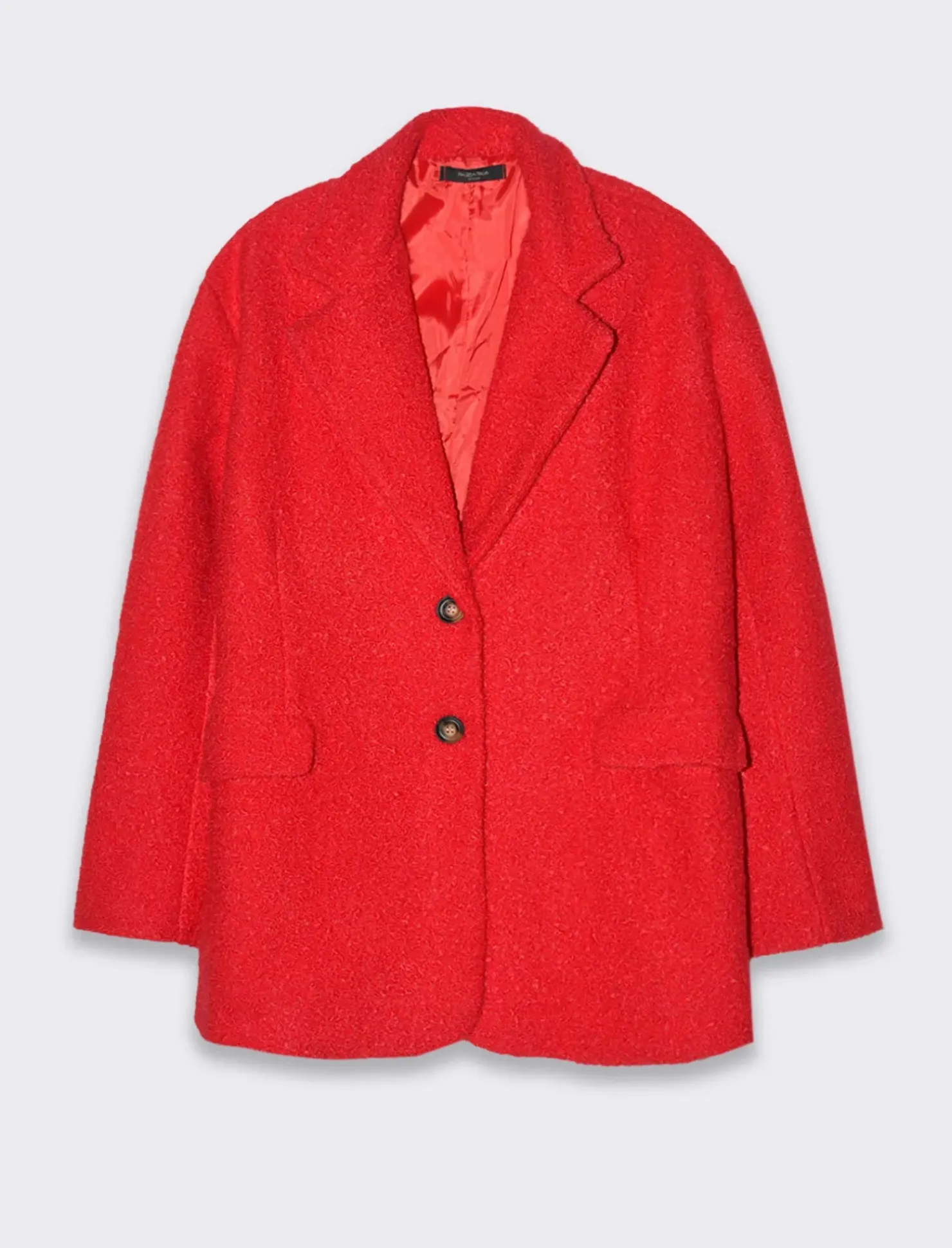 Un giaccone che unisce eleganza e comfort, realizzato in tessuto bouclé, noto per la sua texture morbida e leggermente irregolare. Questo capo presenta un collo reverse, che aggiunge un tocco di raffinatezza e modernità . Il tessuto bouclé non solo offre un aspetto lussuoso, ma anche una sensazione di calore e accoglienza, perfetta per le giornate più fredde. Il design del giaccone è pensato per essere versatile, adatto sia a look casual che più formali, rendendolo un pezzo indispensabile nel guardaroba di chi ama lo stile sofisticato ma confortevole. Il prodotto è di colore Rosso