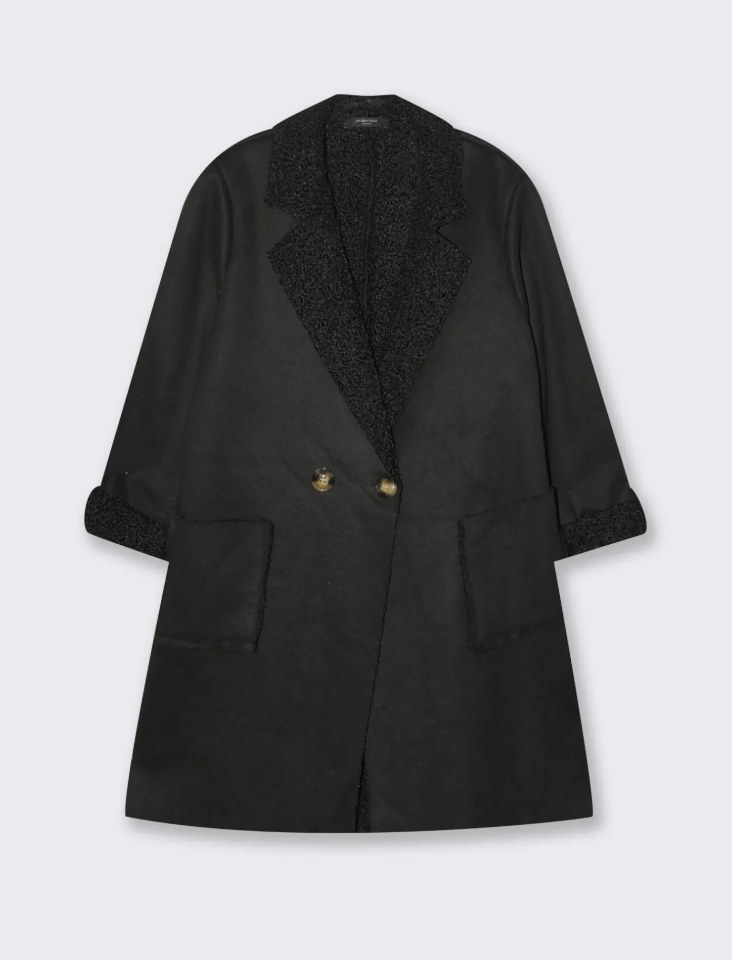 Giaccone elegante e versatile, realizzato in tessuto combinato che unisce materiali diversi per un effetto sofisticato. Questo capo presenta una chiusura a due bottoni, che aggiunge un tocco classico e raffinato. Le tasche, pratiche e funzionali, sono posizionate strategicamente per offrire comodità senza compromettere lo stile. Il giaccone ha una linea pulita e moderna, con un taglio che valorizza la figura senza essere troppo aderente. Il tessuto combinato può includere elementi come lana e poliestere, garantendo calore e resistenza alle intemperie. Il prodotto è di colore Nero