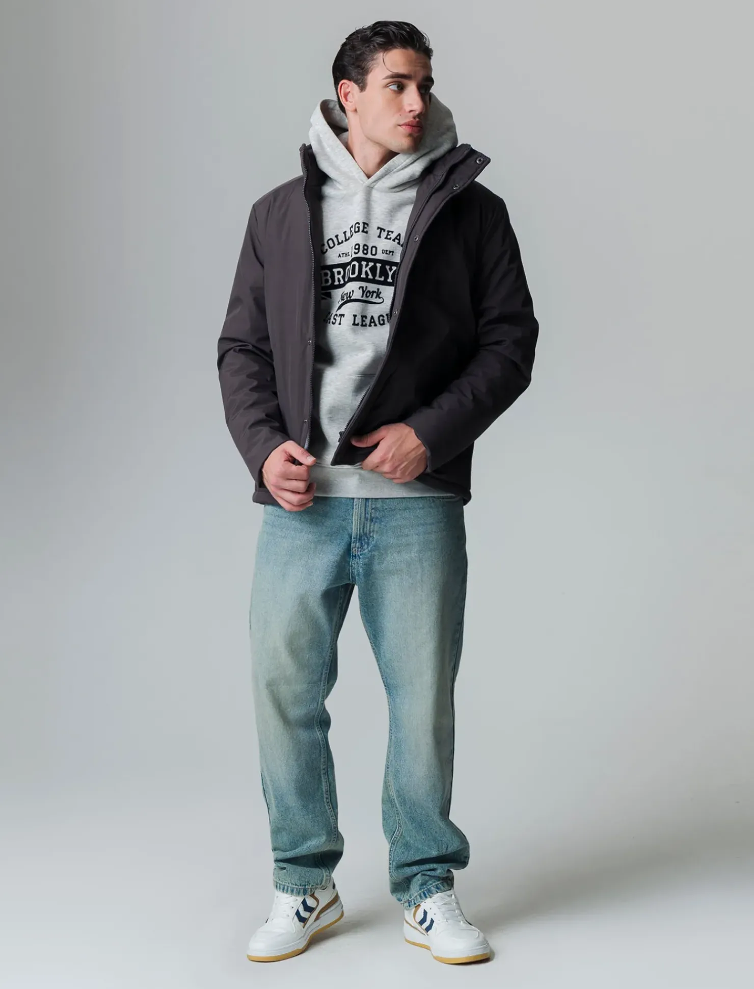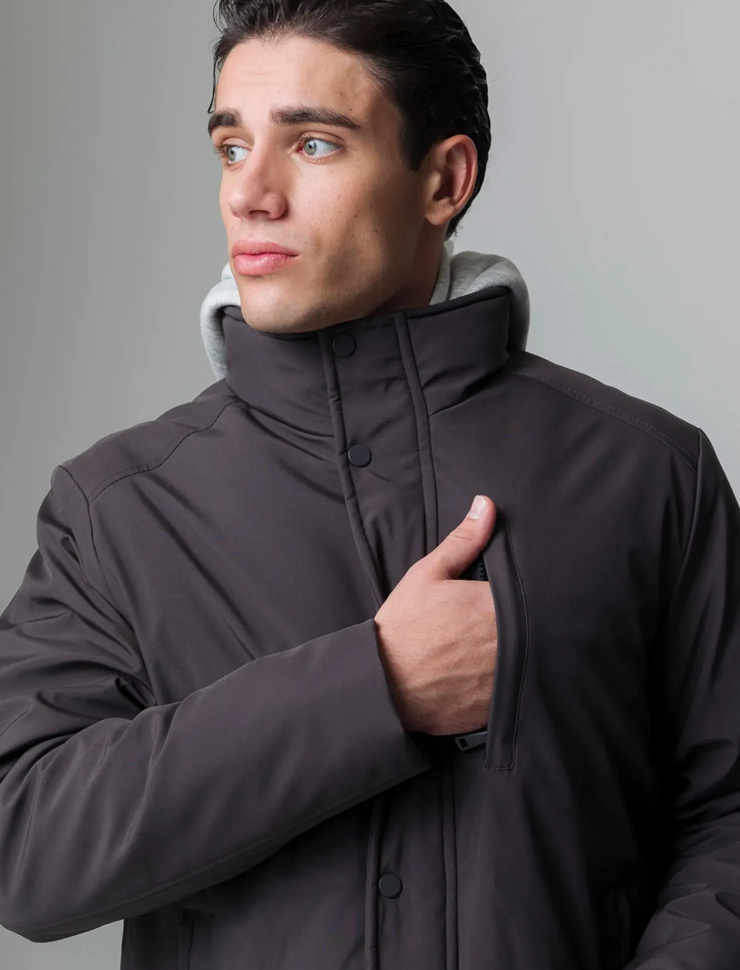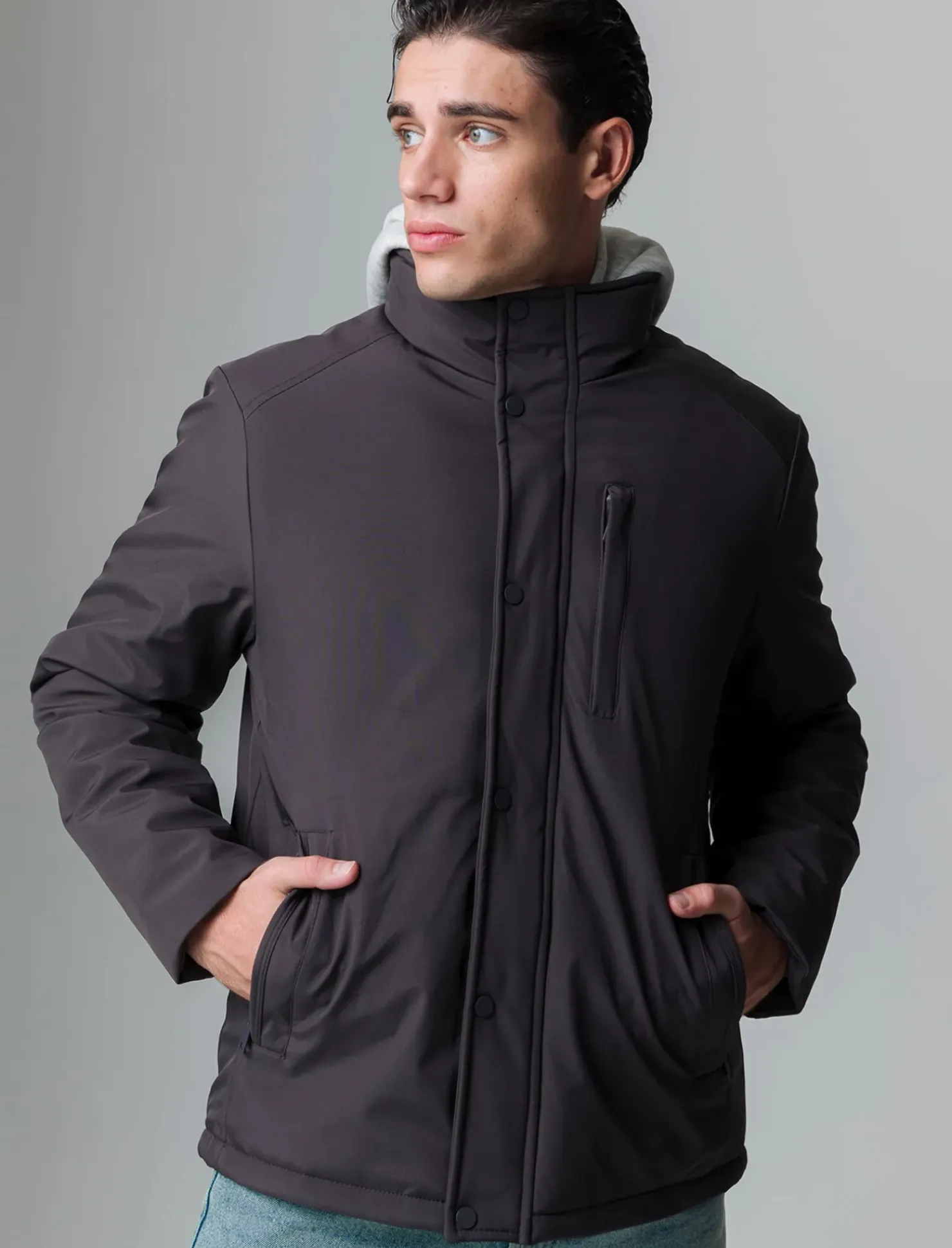 Giaccone con imbottitura interna, progettato per offrire comfort e protezione anche nelle giornate più fredde. Realizzato in tessuto tecnico resistente, presenta un collo alto che garantisce calore e una vestibilità perfetta. Le maniche lunghe e le tasche con cerniera sul davanti offrono praticità e sicurezza per i tuoi oggetti personali. La chiusura frontale, con bottoni automatici e zip nascosta, unisce funzionalità e stile, rendendo questo giaccone un elemento essenziale nel guardaroba maschile. Il prodotto è di colore Moro