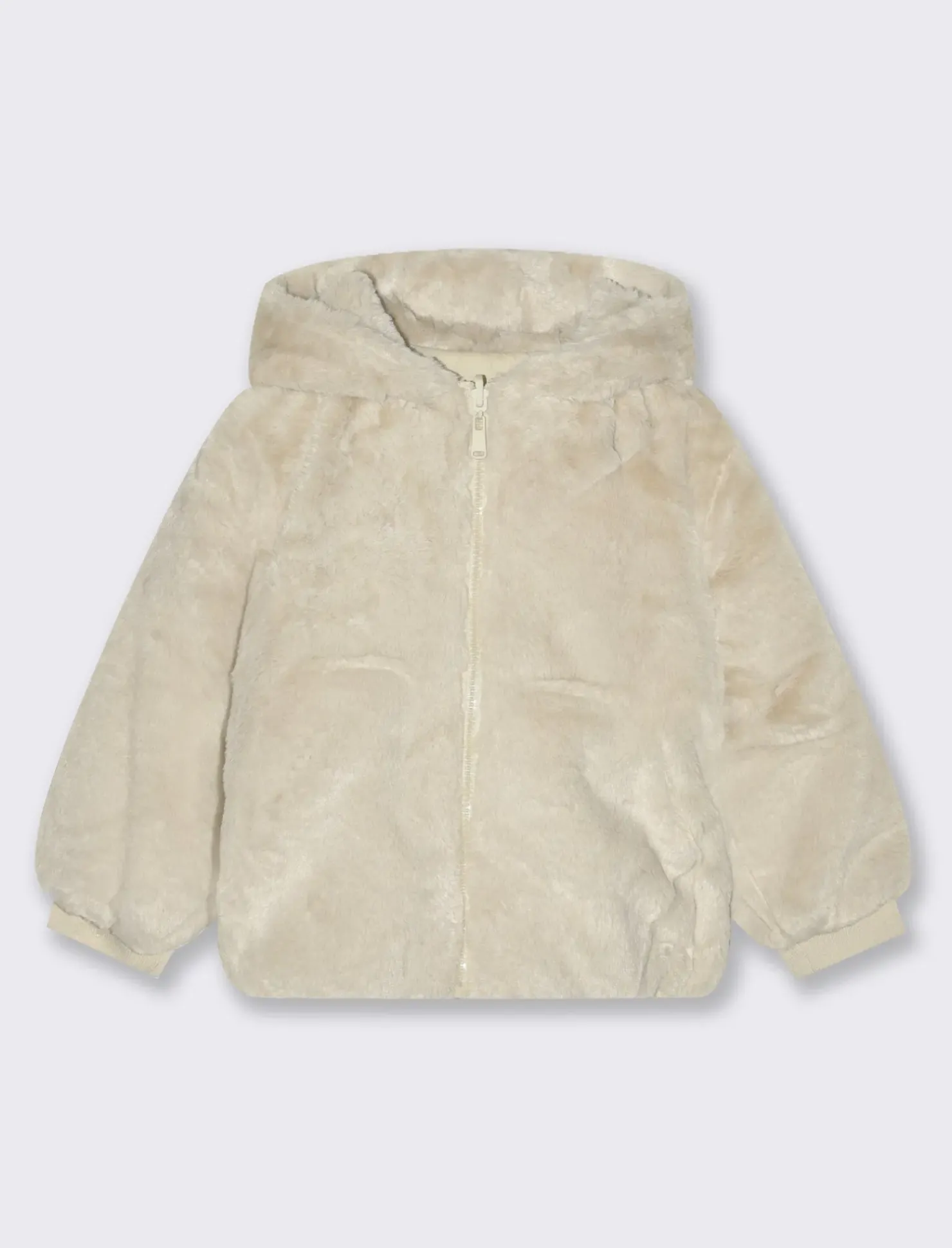 Piazza Italia Giubbino da bambina effetto finta pelliccia e trapuntato con cappuccio – Beige Hot