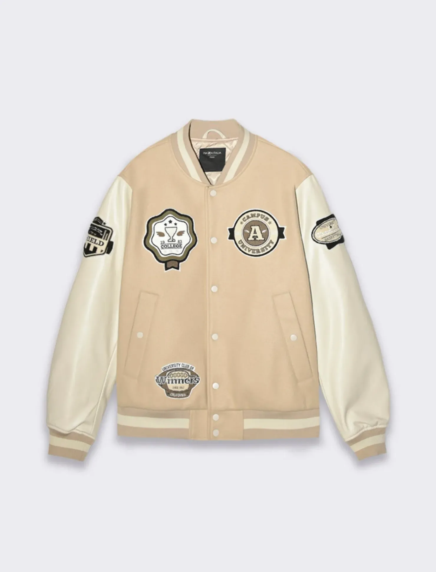 Piazza Italia Giubbotto bomber varsity in panno – Beige Online