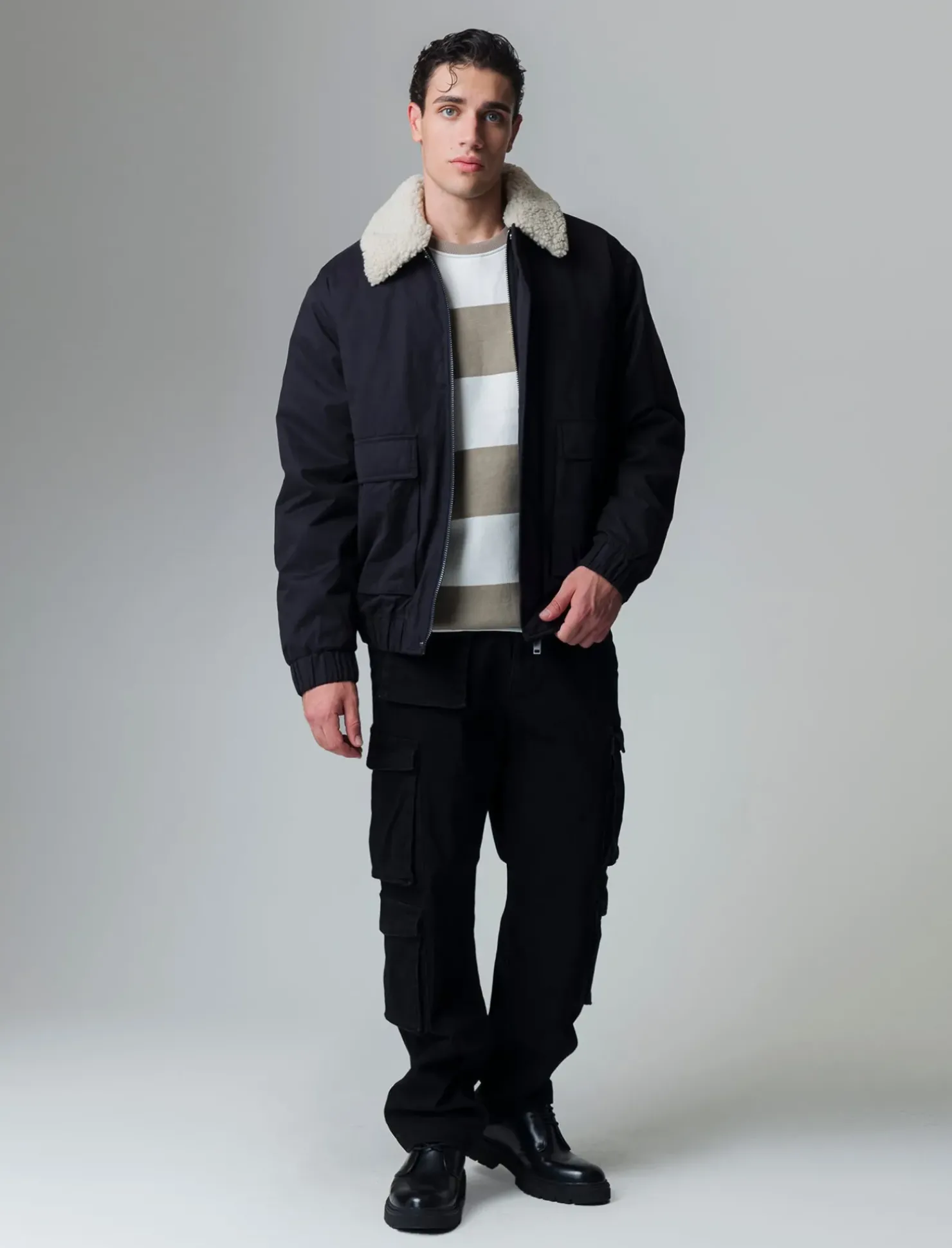 Giubbotto imbottito dal design moderno, perfetto per l’uomo che cerca comfort e stile. Il collo in pelliccia sintetica, rimovibile, aggiunge un tocco di eleganza e versatilità, permettendo di adattare il capo a diverse occasioni. Le maniche lunghe garantiscono calore, mentre le tasche applicate con patta sui fianchi offrono praticità e un look contemporaneo. La chiusura frontale con cerniera, nascosta da una patta con bottoni automatici, completa il tutto, rendendo il giubbotto ideale per affrontare le giornate più fredde con classe. Il prodotto è di colore Nero