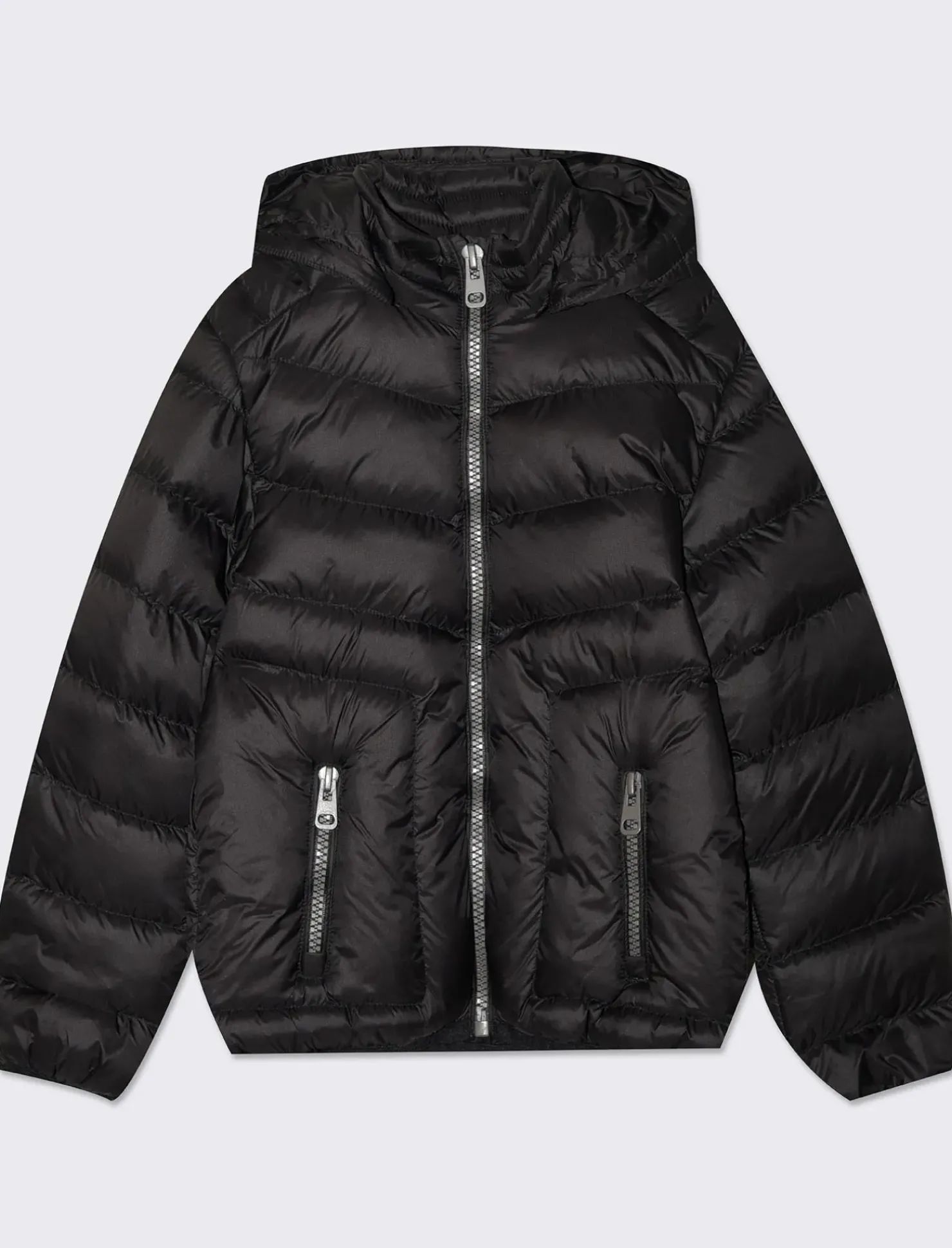 Giubbotto imbottito con cappuccio per bambini, perfetto per proteggerli dal freddo invernale. Dotato di comode zip sulle tasche e sul davanti, ideale per tenere al sicuro piccoli oggetti. Realizzato con materiali di alta qualità, garantisce calore e comfort in ogni occasione. Il prodotto è di colore Nero