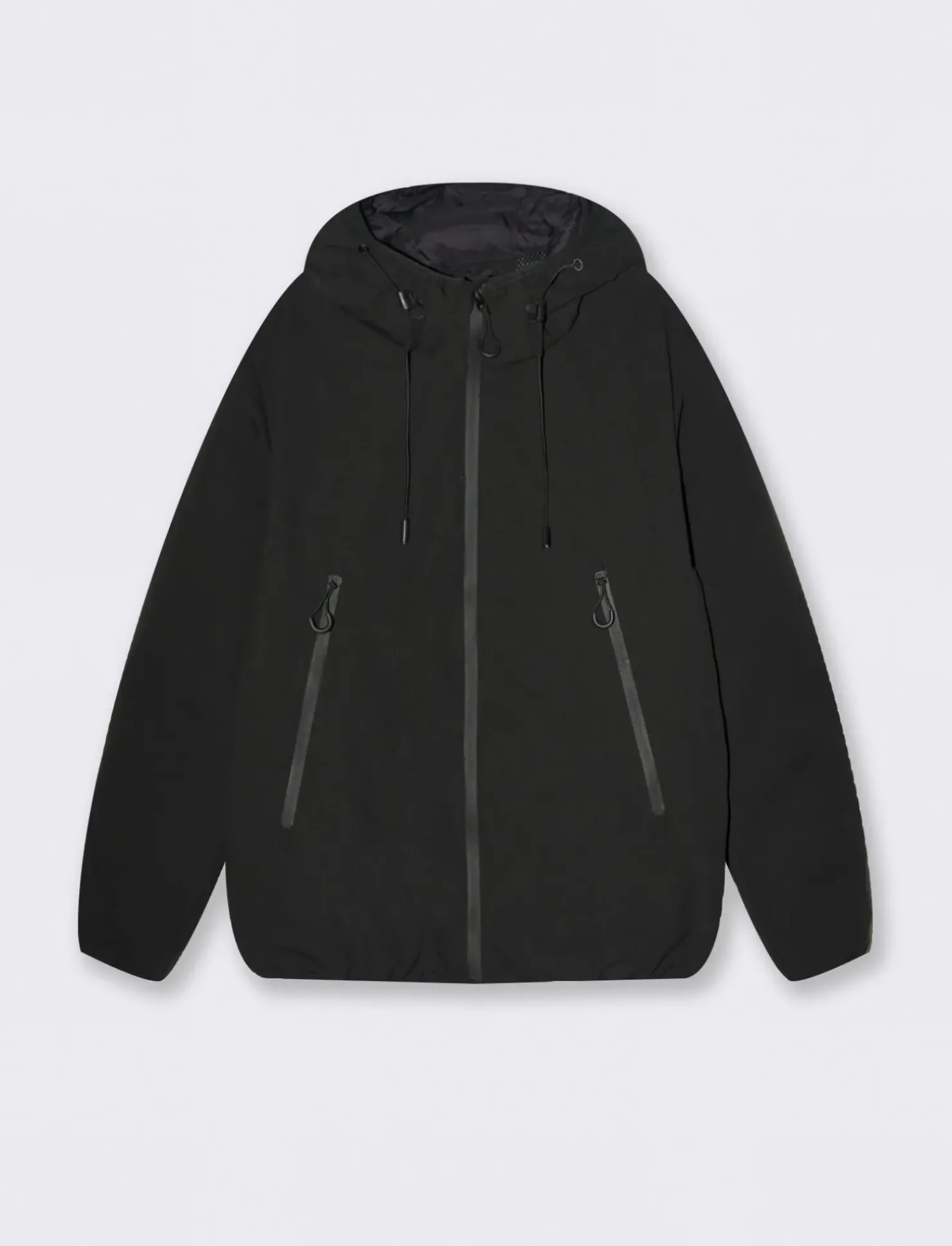 Giubbotto con cappuccio perfetto per affrontare le giornate più fredde con stile e comfort. Realizzato in tessuto tecnico di alta qualità, garantisce calore e protezione. Il collo alto e le maniche lunghe offrono ulteriore riparo dal vento, mentre le tasche con chiusura termosaldata sui fianchi permettono di tenere al sicuro gli oggetti personali. La chiusura frontale con cerniera e gli orli elasticizzati completano il look sportivo e funzionale di questo capo. Il prodotto è di colore Nero