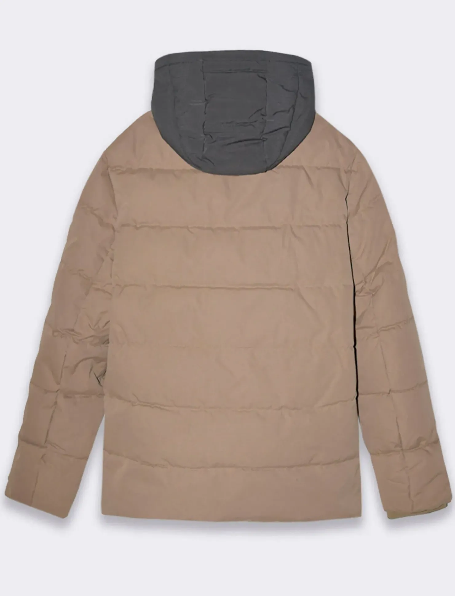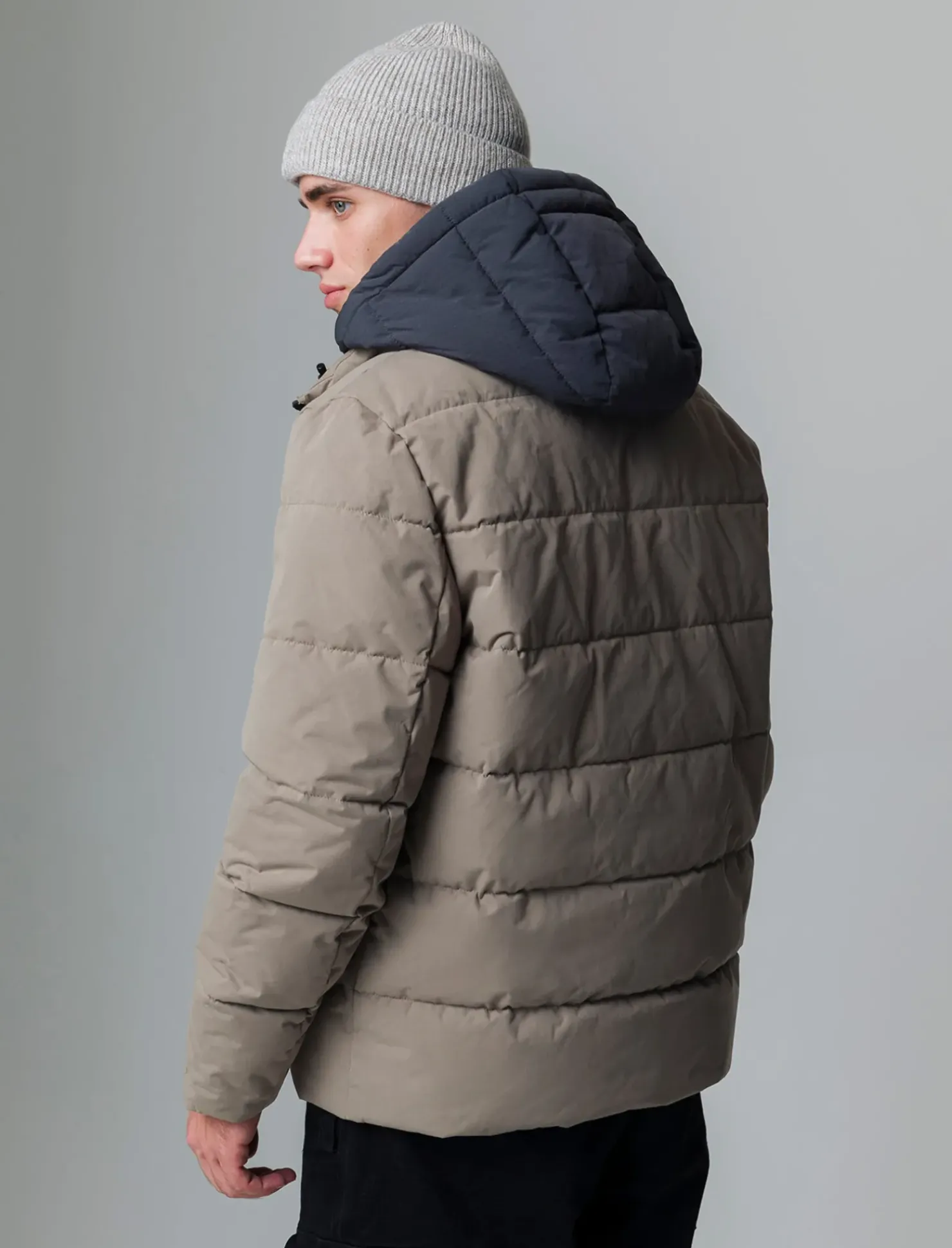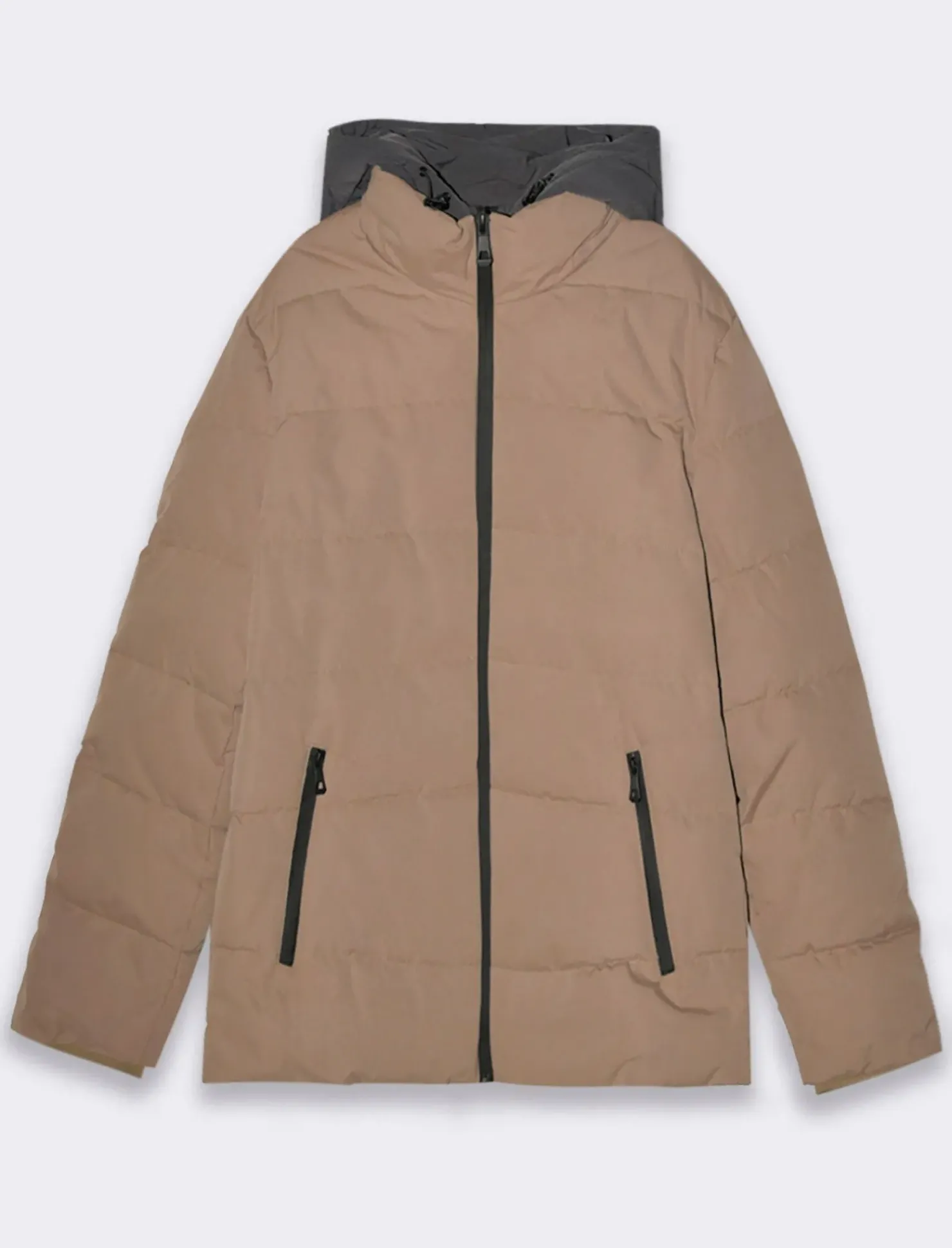 Giubbotto con cappuccio finto doppio capo, ideale per l’uomo moderno che cerca stile e funzionalità. Realizzato in tessuto tecnico, offre un’imbottitura calda e confortevole, perfetta per le giornate più fredde. Il design a contrasto del finto doppio capo aggiunge un tocco di originalità, mentre il cappuccio garantisce protezione dal vento. Le maniche lunghe e le tasche anteriori con cerniera offrono praticità, rendendolo un capo versatile per ogni occasione. Il prodotto è di colore Verde kaki