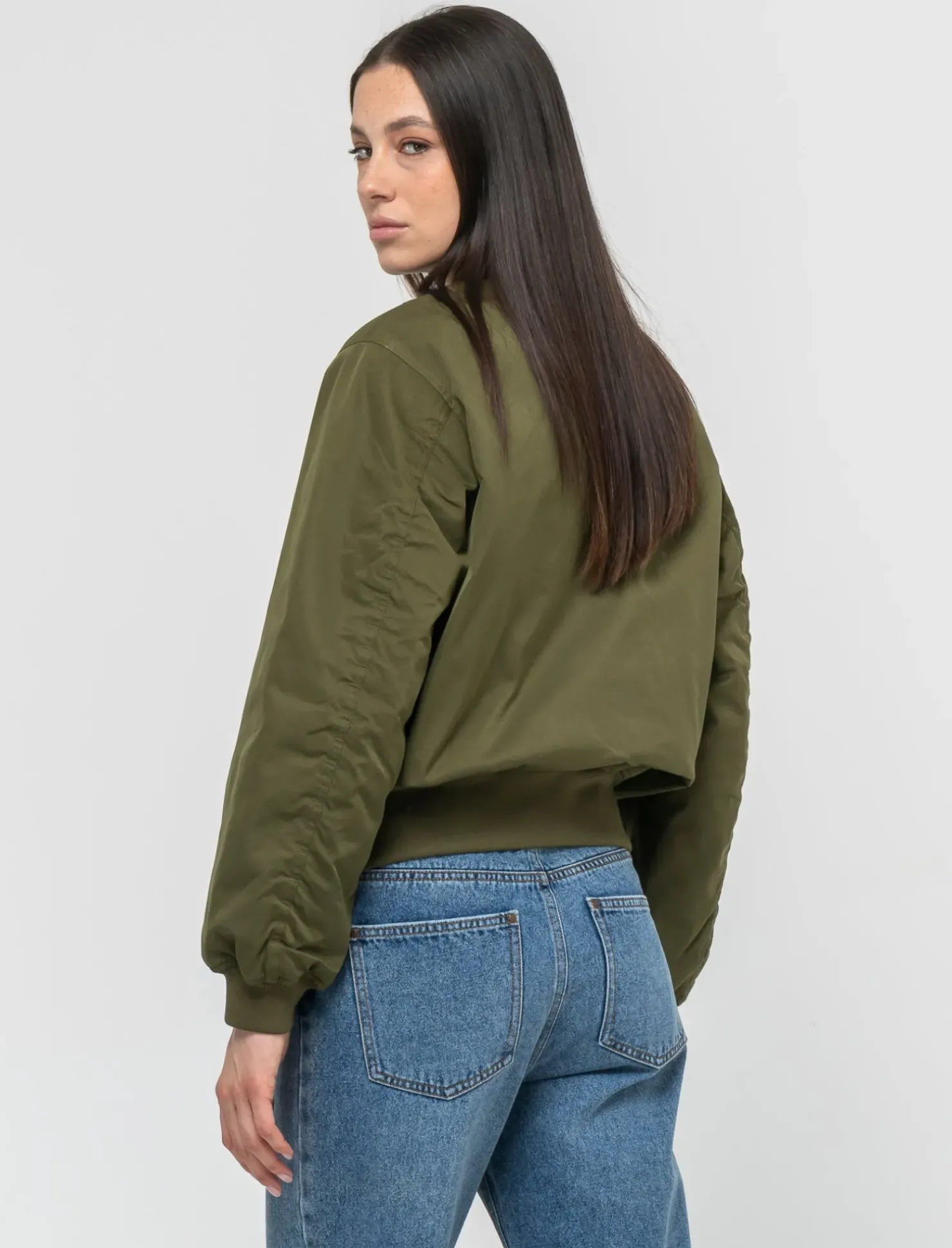 Il giubbotto modello bomber leggero per donna è l’ideale per affrontare la mezza stagione con stile e comfort. Realizzato in tessuto tecnico, è leggermente imbottito per garantire calore senza appesantire. Il tessuto in costina elasticizzato collo e maniche assicura una vestibilità perfetta e una libertà di movimento ottimale. Il prodotto è di colore Kaky 1