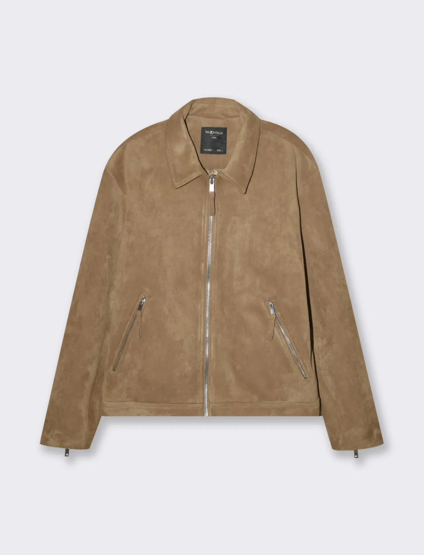 Giubbotto effetto dainetto, un capo d’abbigliamento pensato per l’uomo moderno. Realizzato in un tessuto morbido e resistente, offre un comfort ottimale in ogni occasione. Il colletto elegante e le maniche lunghe garantiscono una vestibilità perfetta, mentre i polsini rifiniti e le tasche sui fianchi aggiungono un tocco pratico e stiloso. La chiusura frontale con cerniere a vista completa il design, rendendolo ideale per un look casual ma ricercato. Il prodotto è di colore Marrone tabacco
