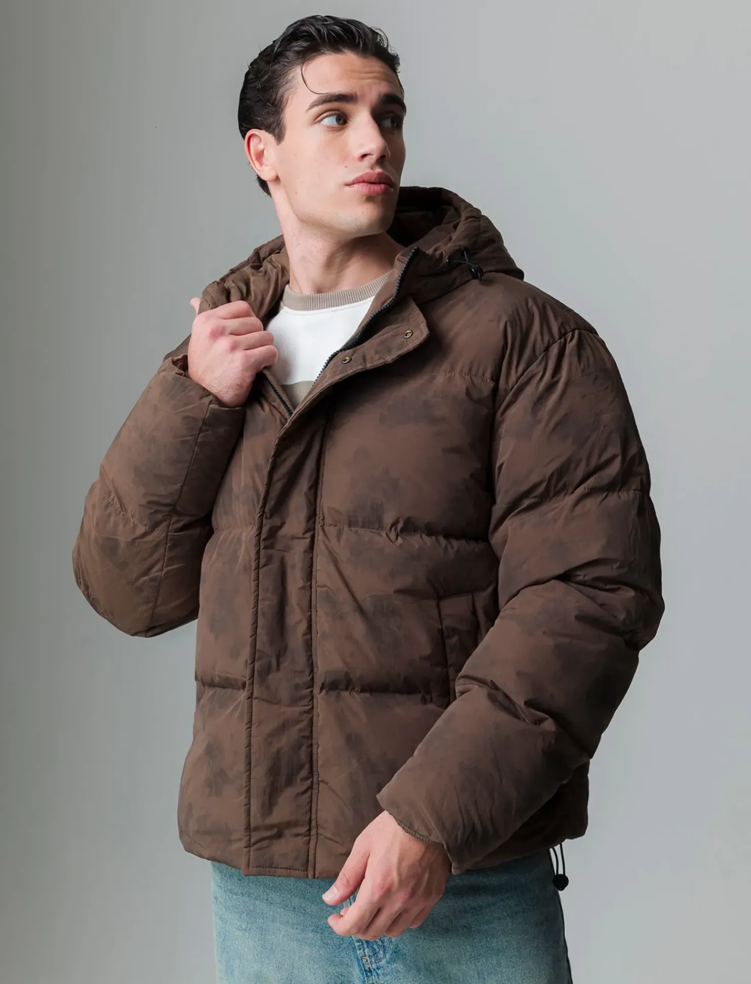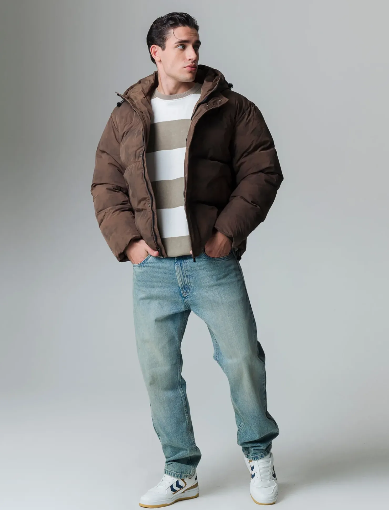 Giubbotto imbottito con cappuccio, un capo essenziale per l’uomo moderno. Realizzato in tessuto tecnico, offre una protezione ottimale contro le intemperie. La stampa fantasia mimetica conferisce un tocco di originalità, rendendolo adatto a diverse occasioni. Il collo alto, dotato di cappuccio regolabile, garantisce comfort e calore. Le maniche lunghe e le pratiche tasche a filetto sul davanti completano un design funzionale e stiloso, ideale per chi cerca praticità senza rinunciare al look. Il prodotto è di colore Grigio fango
