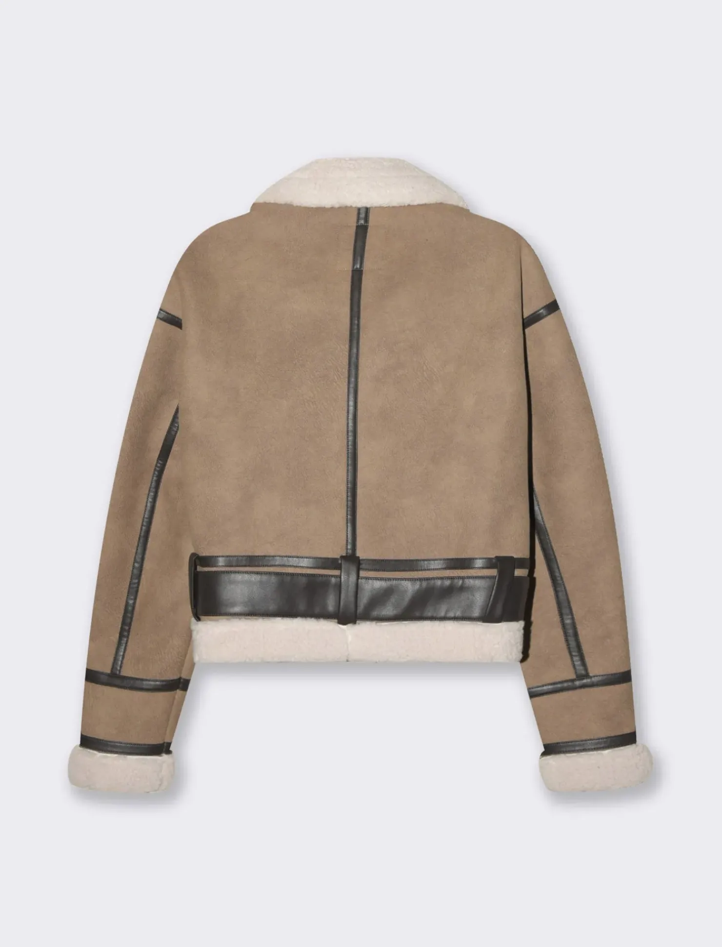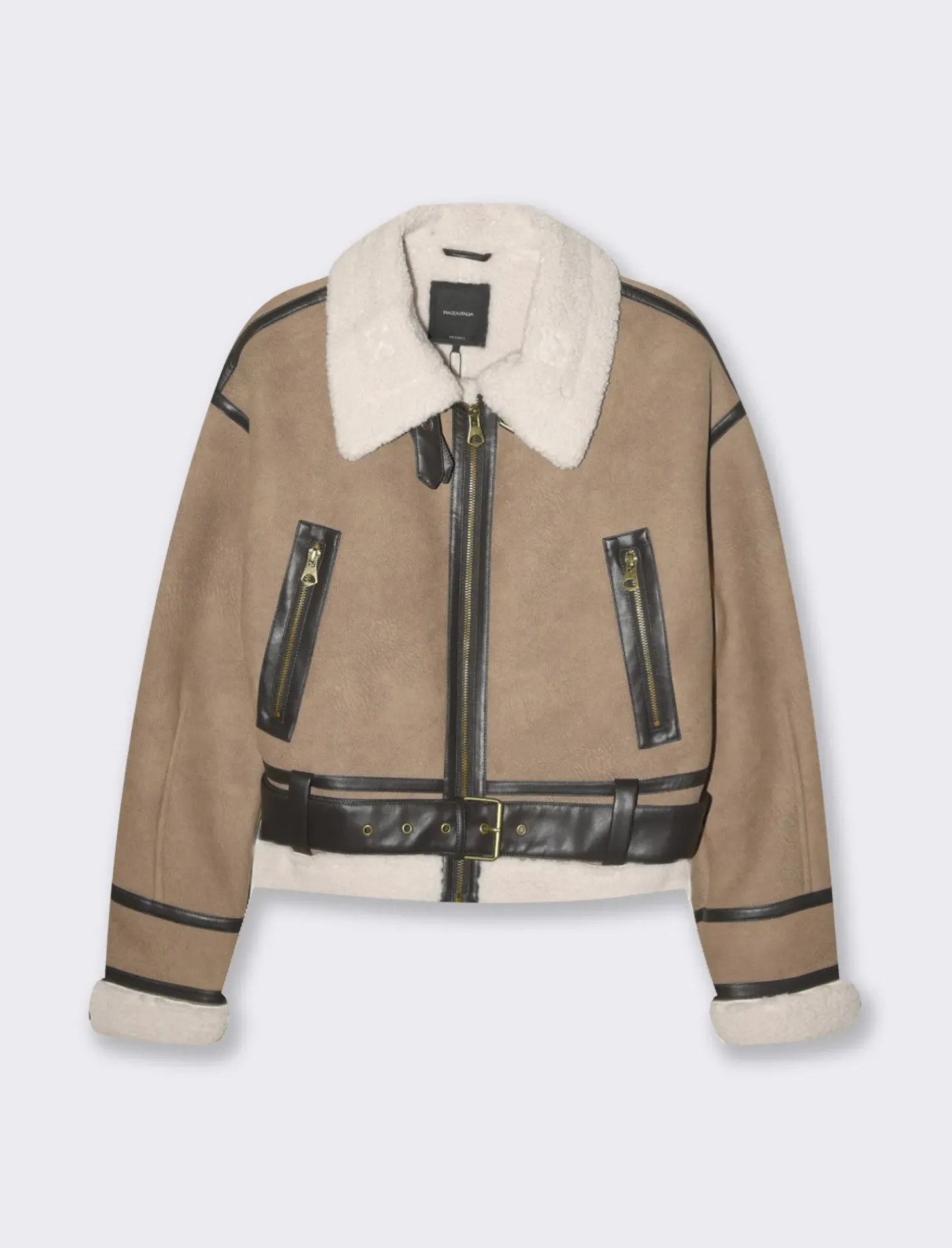 Giubotto corto modello chiodo per donna, realizzato in finto suede, perfetto per un look audace e contemporaneo. La cintura in vita valorizza la silhouette, mentre le tasche frontali con cerniera offrono praticità e stile. L’interno è rivestito in morbido sherling, garantendo comfort e calore durante le giornate più fresche. Ideale per completare outfit casual o per un tocco rock a serate speciali, questo giubotto è un must-have nel guardaroba femminile. Il prodotto è di colore Grigio tortora
