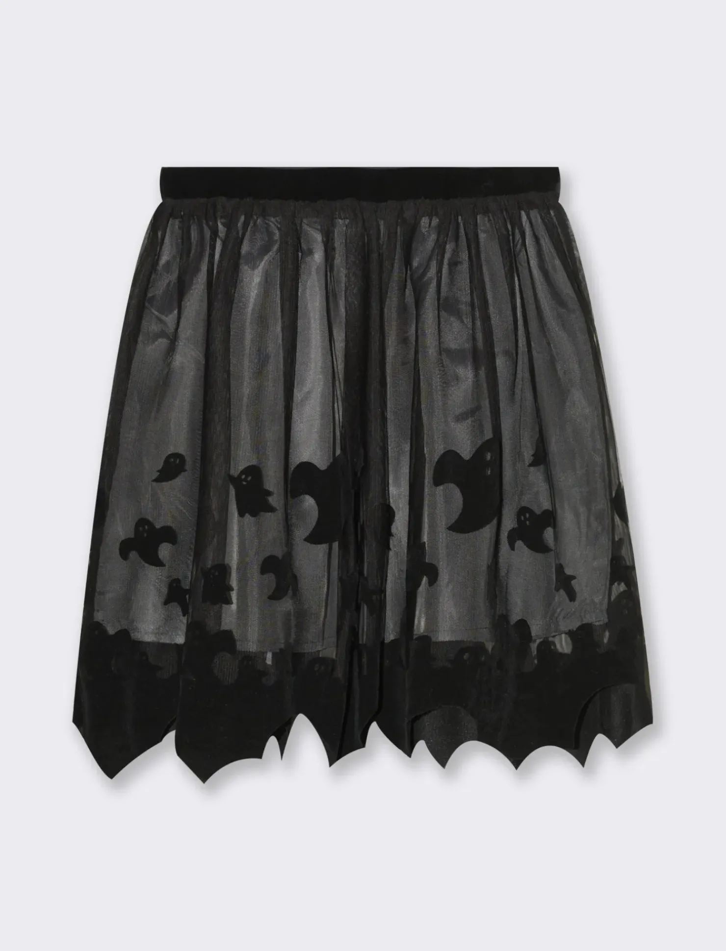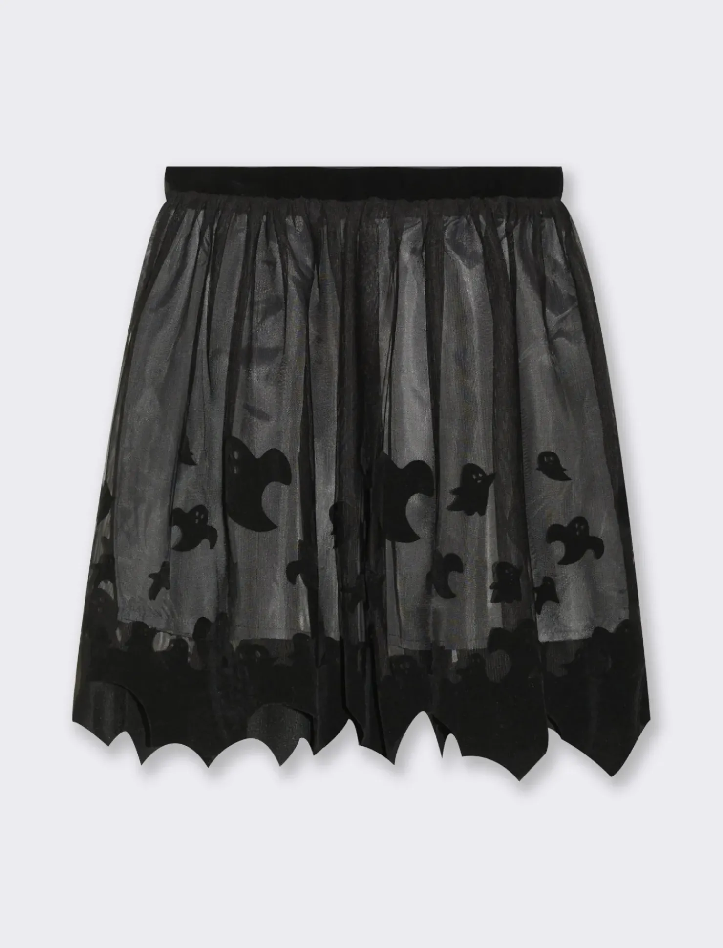 Piazza Italia Gonna in tulle da bambina con stampa flock a tema halloween e orlo sagomato – Nero New