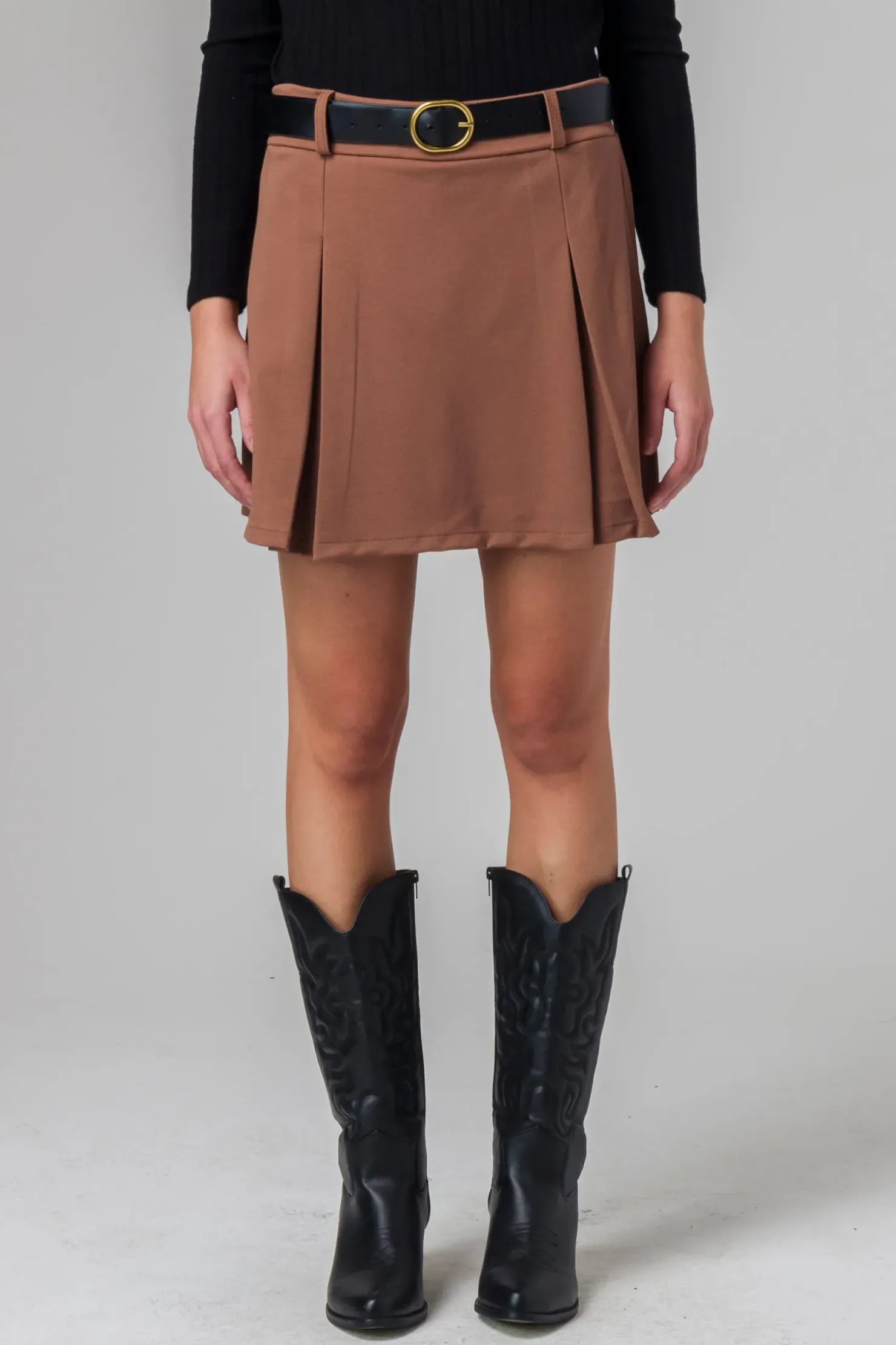 Piazza Italia Gonna pantaloncino con elastico in vita e cintura – Cammello Beige Hot