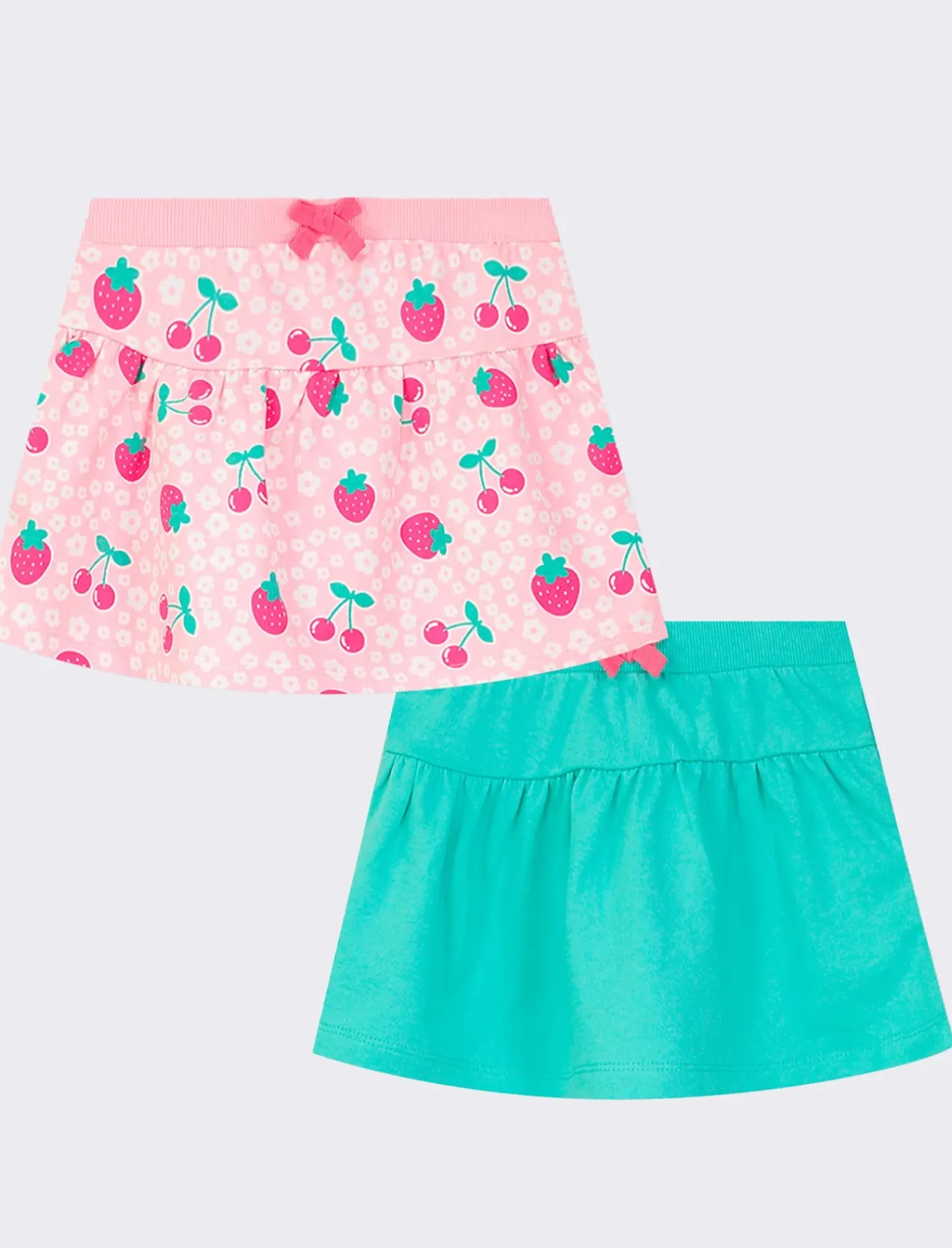 Scopri il set bipack di gonne per bambini, composto da una gonna in tinta unita e una a fantasia con balza arricciata e fiocchetto applicato. Disponibile in 2 varianti colore, questo bipack garantisce un look versatile e alla moda per le piccole fashioniste. Il prodotto è di colore Verde