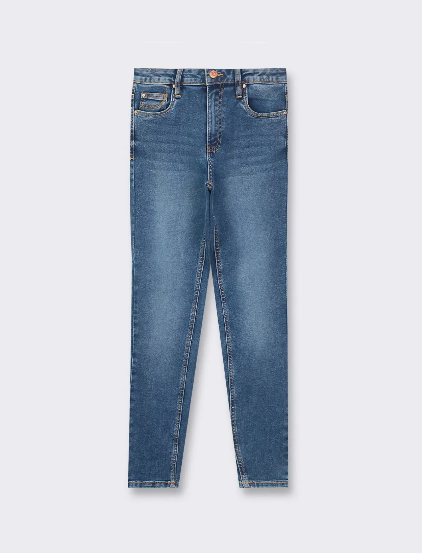Piazza Italia Jeans basico 5 tasche vita alta vestibilità skinny e chiusura con zip e bottone – DENIM SCURO Blu Store