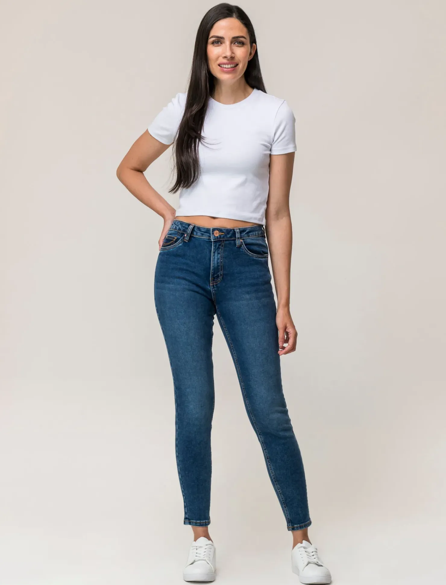 Jeans basic a 5 tasche, perfetti per ogni occasione. Con vita alta e vestibilità skinny, ti faranno sentire comoda e alla moda in ogni momento della giornata. La chiusura con zip e bottone garantisce praticità e sicurezza. Un capo essenziale nel guardaroba di ogni donna moderna. Il prodotto è di colore DENIM SCURO
