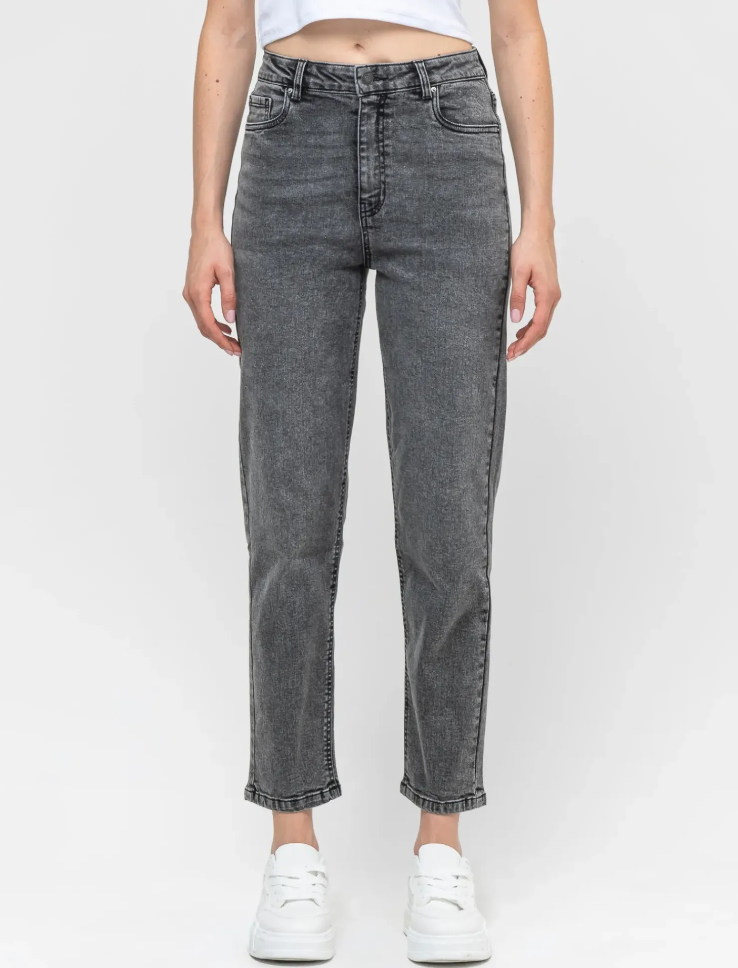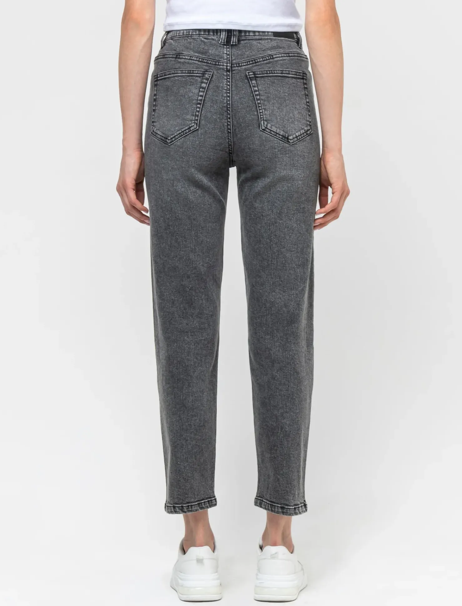 Jeans mom fit, vita regolare per un look casual e comodo. Realizzati con un tessuto morbido e confortevole . La chiusura con bottone e cerniera assicura una vestibilità perfetta. Ideali per un outfit versatile e alla moda. Il prodotto è di colore Grigio