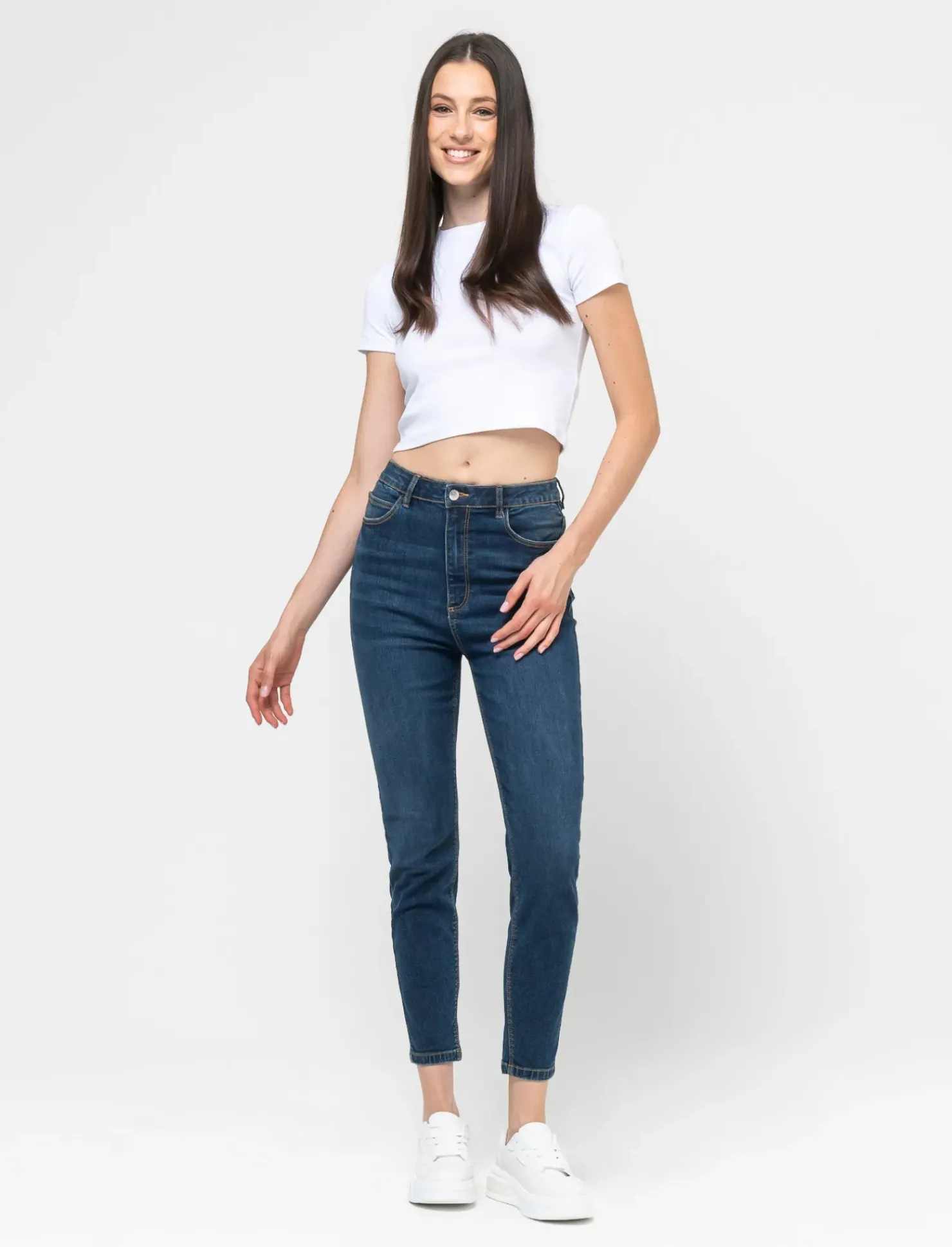 Il Jeans vita alta vestibilità skinny donna è un capo iconico che non può mancare nel guardaroba di ogni donna. Realizzati in tessuto elasticizzato, garantiscono comfort e adattabilità. Con cinque tasche, chiusura con cerniera e bottone, sono pratici e versatili. Disponibili in una varietà di colori per soddisfare ogni stile e preferenza. Il prodotto è di colore DENIM SCURO