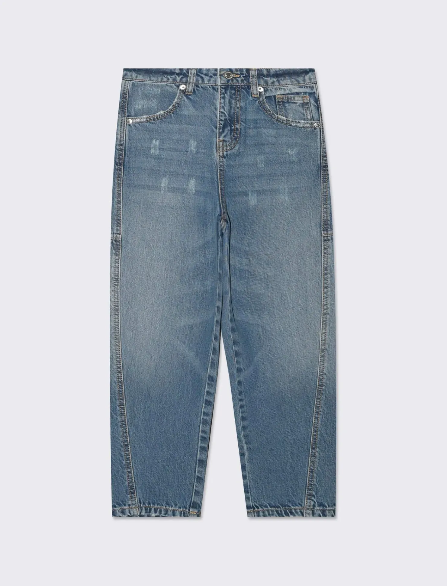 I jeans da bambina in cotone offrono una vestibilità mom fit, perfetta per un look alla moda e comodo. Caratterizzati da cinque tasche, sono ideali per riporre piccoli oggetti e dare un tocco pratico all’outfit. Il cotone morbido garantisce comfort durante tutto il giorno, rendendoli adatti per la scuola, il tempo libero o le occasioni speciali. Un capo versatile che si abbina facilmente a t-shirt, maglioni e sneakers. Il prodotto è di colore Denim