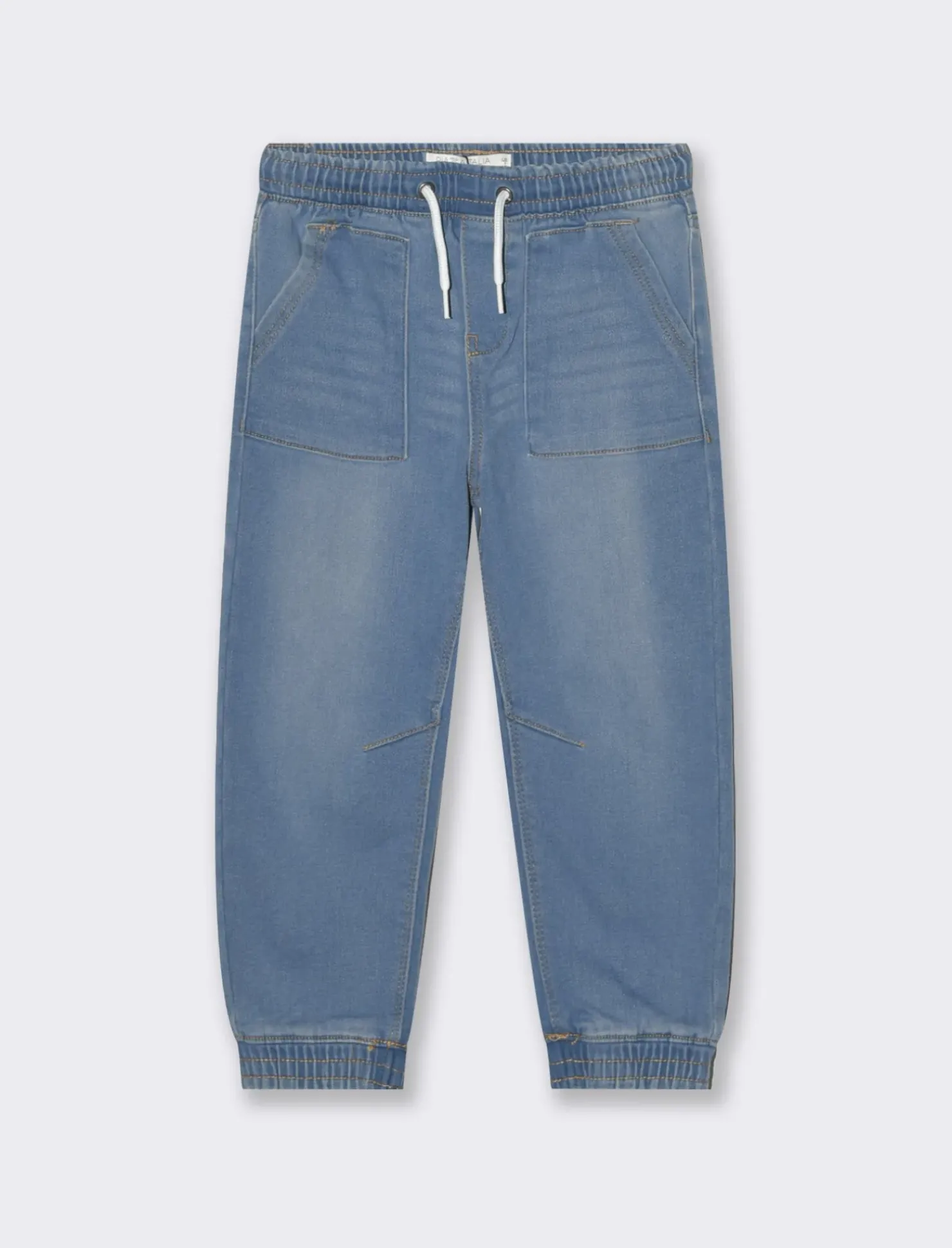 Questi Jeans modello jogger combinano lo stile casual dei jogger con il tessuto classico dei jeans, offrendo comfort e praticità. La presenza dei lacci in vita li rende regolabili e li aggiunge un tocco sportivo e rilassato. Questo tipo di pantaloni è perfetto per chi cerca un look alla moda senza sacrificare il comfort, ideale per un outfit quotidiano informale. Il prodotto è di colore Denim chiaro