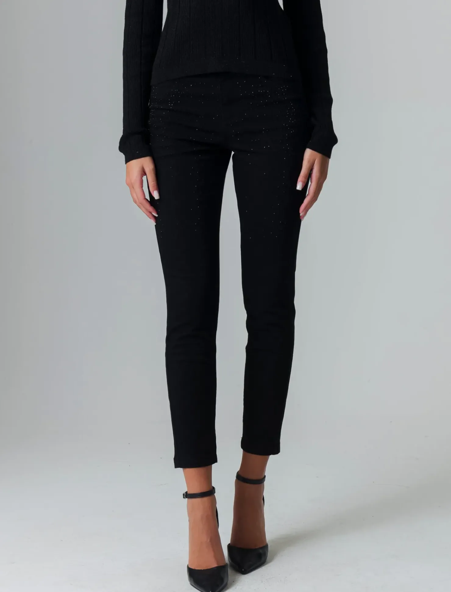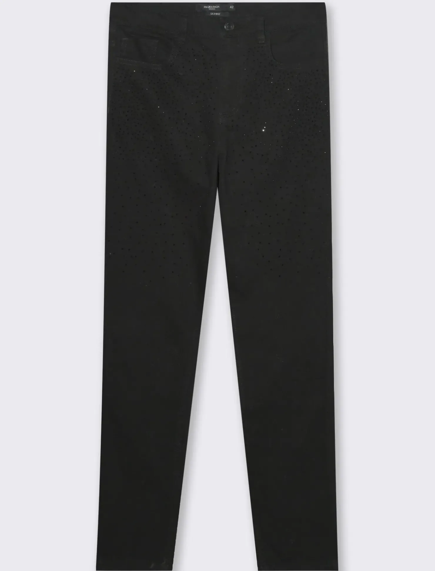 I jeans skinny 5 tasche per donna sono un capo essenziale per ogni guardaroba. Realizzati con un taglio aderente, valorizzano la silhouette, offrendo comfort e stile. La chiusura con bottoni e cerniera in metallo garantisce praticità, mentre l’applicazione di strass in vetro sul davanti aggiunge un tocco di eleganza e originalità. Perfetti per un look casual o per occasioni speciali, questi jeans si abbinano facilmente a diverse scarpe e top, rendendoli versatili e chic. Il prodotto è di colore Nero