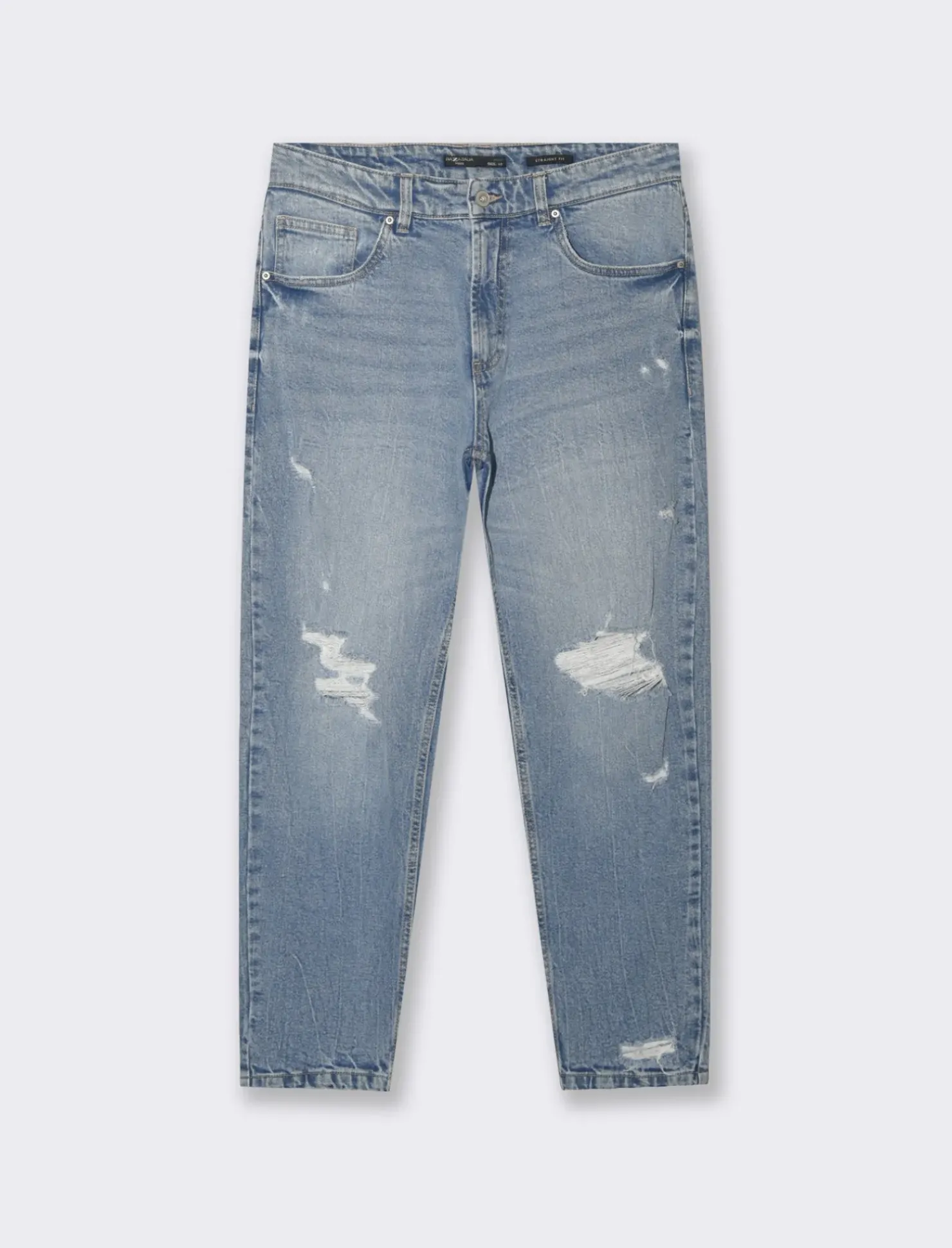 Piazza Italia Jeans straight fit a cinque tasche stretch con strappi effetto slavato – Denim Blu New