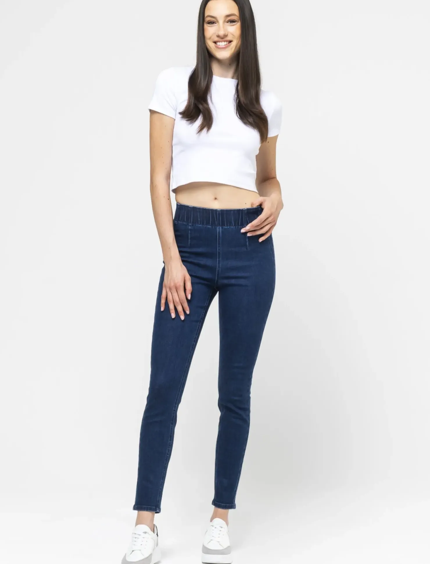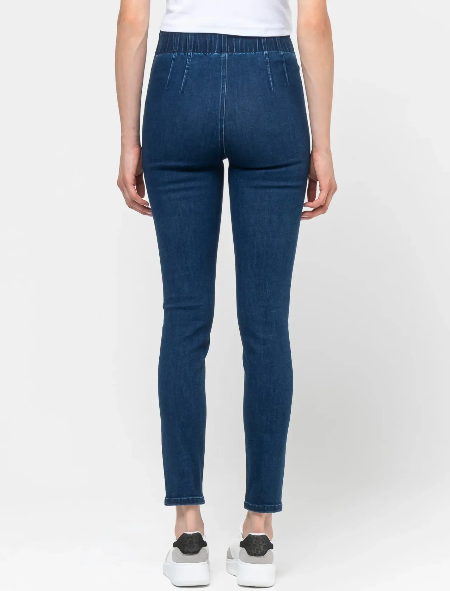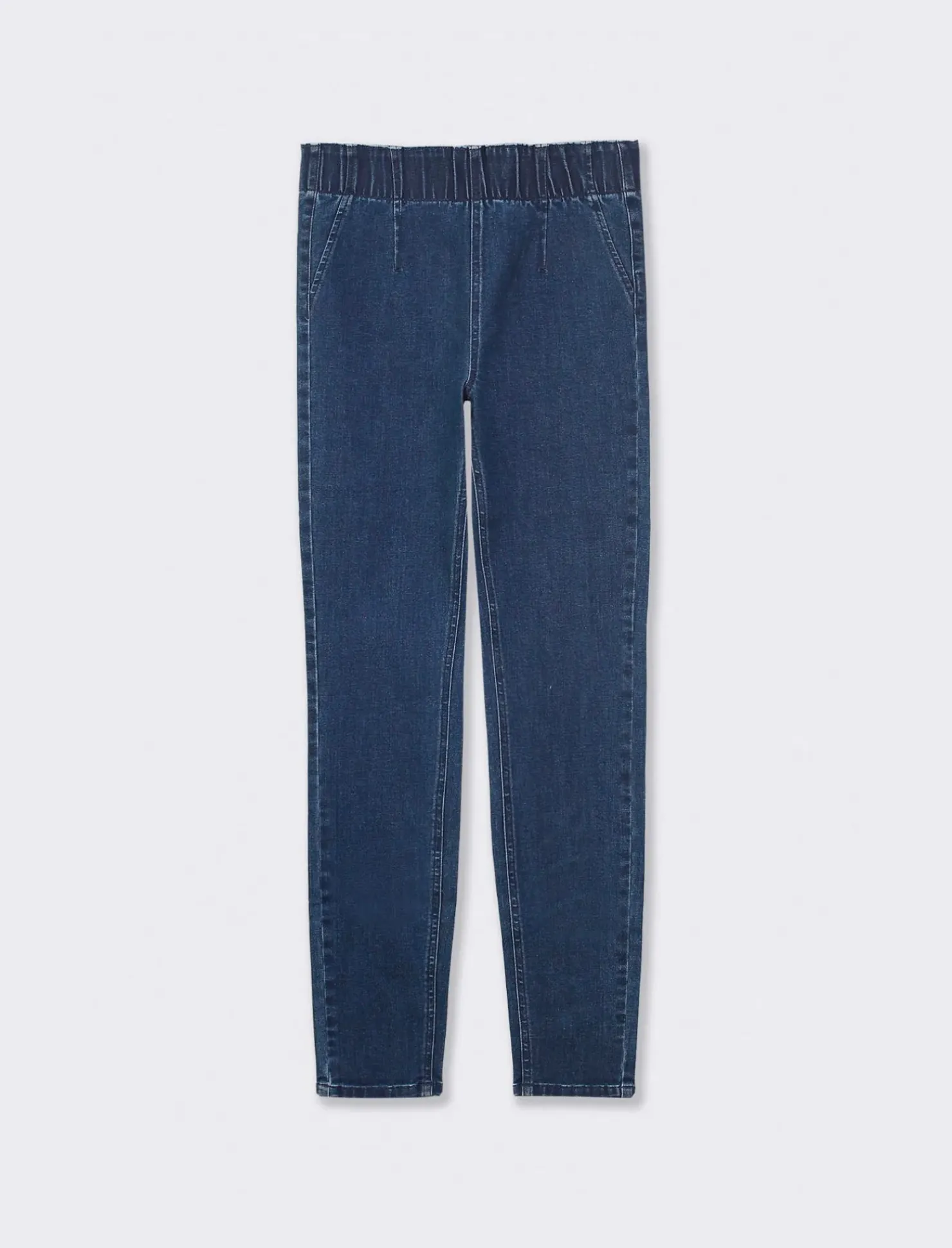 Jeggings high waist vestibilità skinny con elastico in vita. Perfetto per un look casual ma sempre alla moda. Ideale per completare il tuo outfit con stile e personalità. Il prodotto è di colore DENIM SCURO