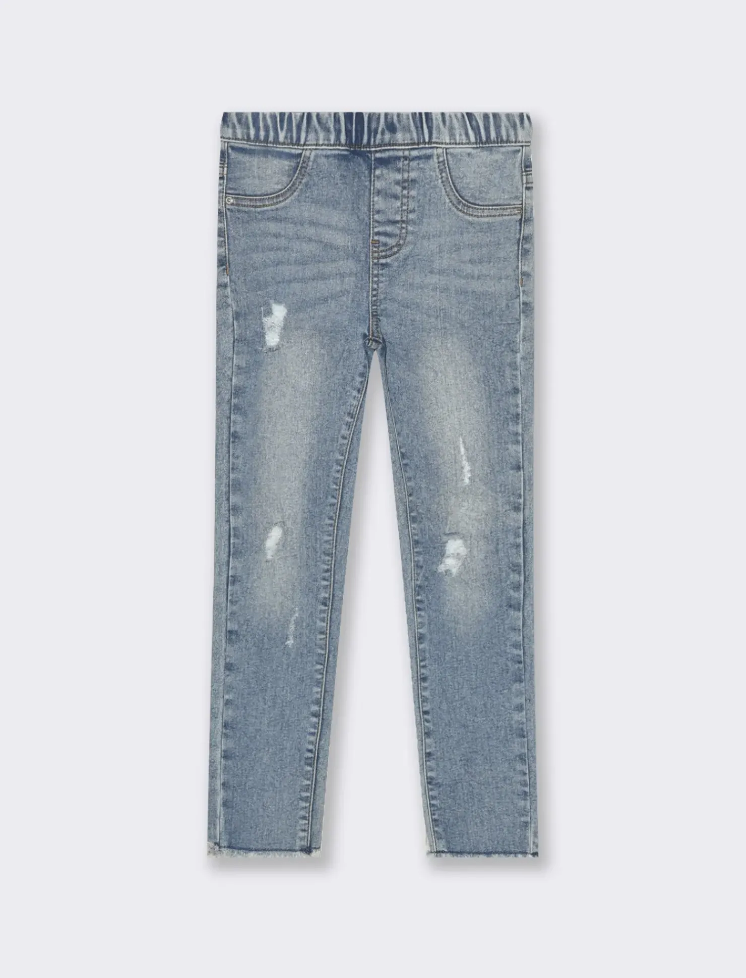 Piazza Italia Jeggings stretch effetto denim con vita elasticizzata e chiusura e tasche trompe l’oeil – Denim chiaro Blu Outlet