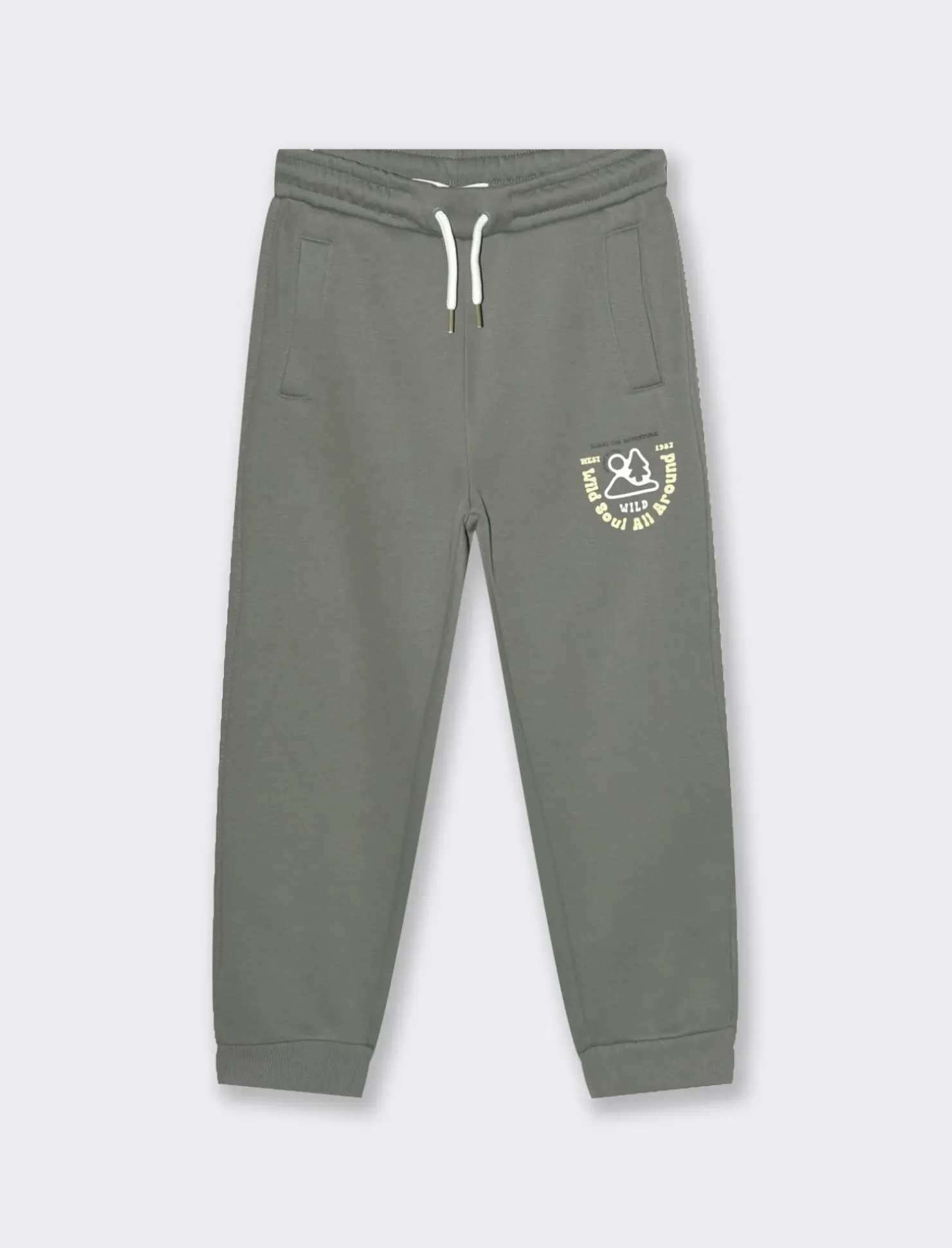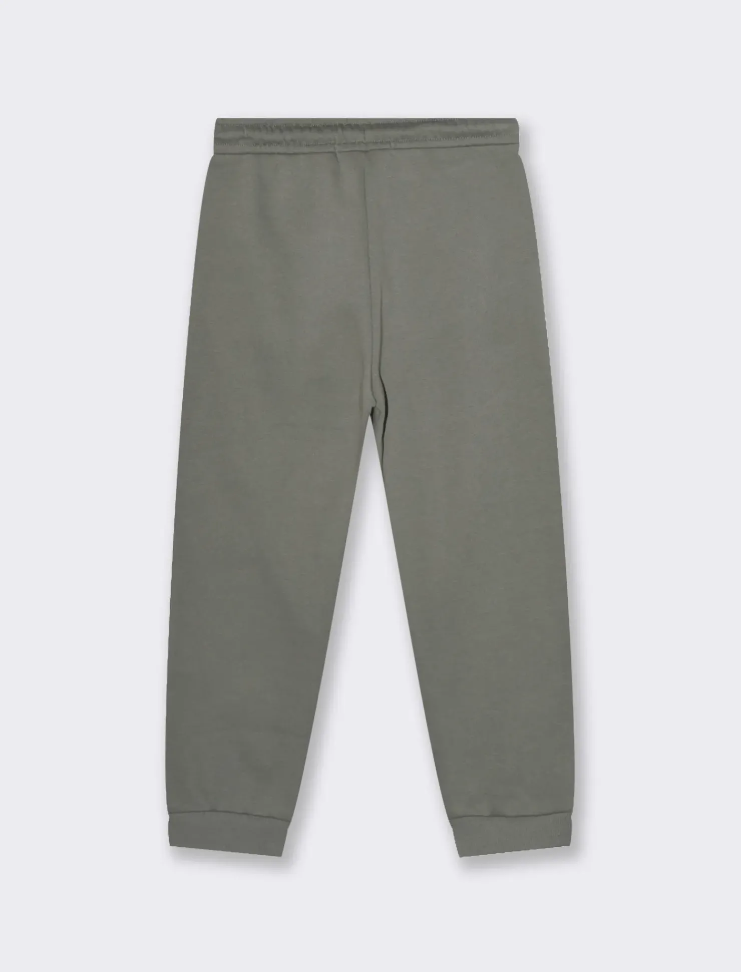 Jogger da bambino tinta unita in felpa garzata con stampa frontale. Lacci ed elastico in vita. Fondo gamba in costina. Ideale per le attività all’aperto nei periodi più freddi. Il prodotto è di colore Verde militare