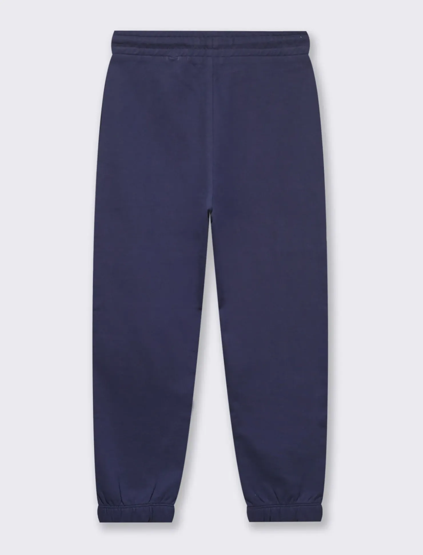 Jogger in felpa con ricamo per bambini, perfetti per un look sportivo e alla moda. Con coulisse e stile varsity, ideali per un look college. Comfort e stile per i più piccoli, da indossare in ogni occasione. Il prodotto è di colore Blu