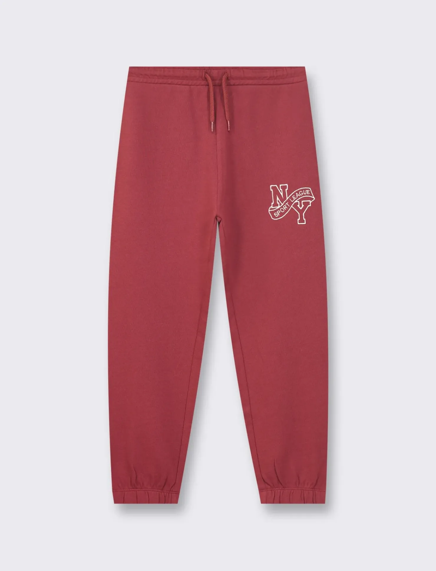 Jogger in felpa con ricamo per bambini, perfetti per un look sportivo e alla moda. Con coulisse e stile varsity, ideali per un look college. Comfort e stile per i più piccoli, da indossare in ogni occasione. Il prodotto è di colore Bordeaux