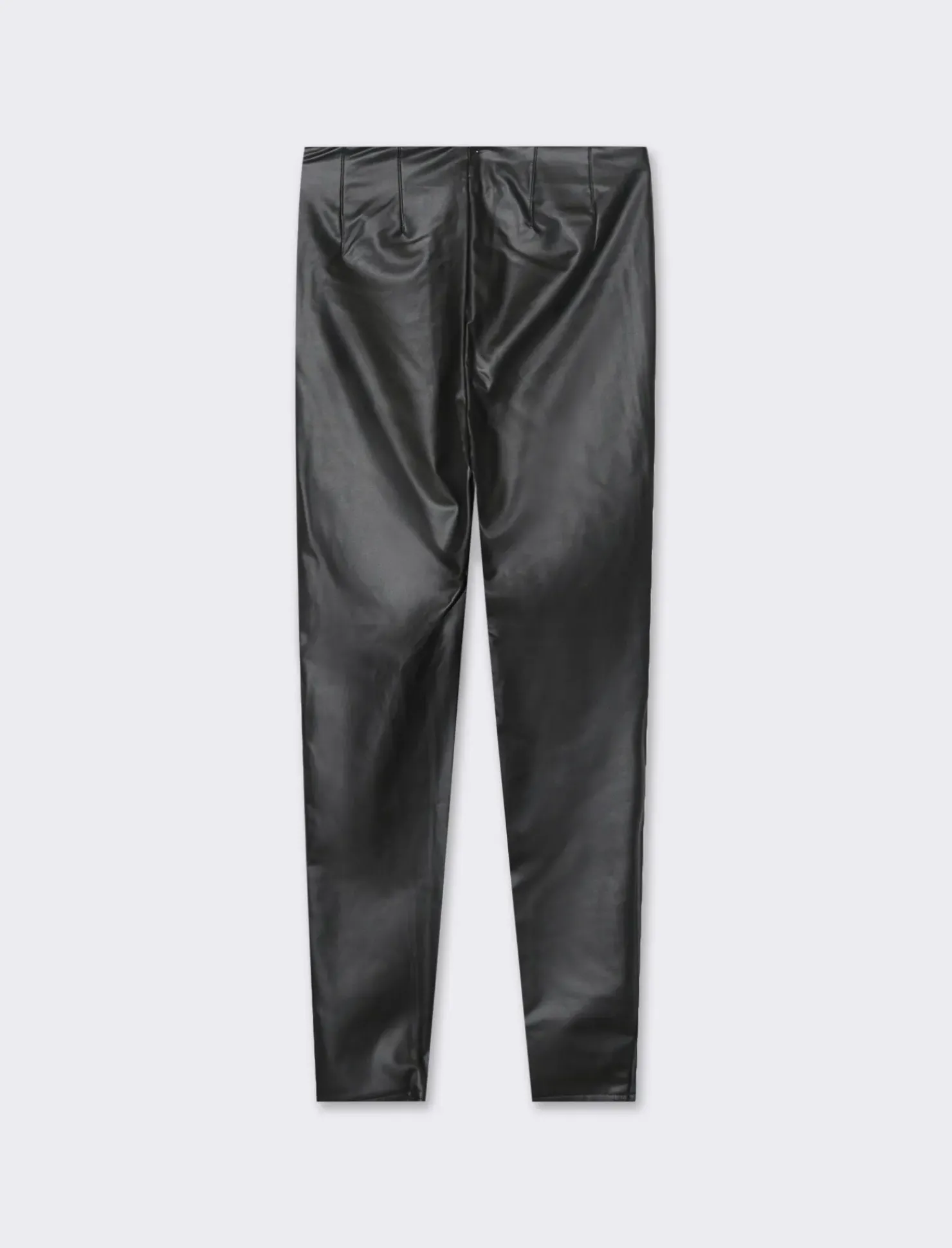 Legging effetto pelle skinny per donna, un capo versatile e alla moda per completare il tuo look con stile. Realizzati con materiali di alta qualità, questi leggings aderenti sono perfetti per creare outfit eleganti e trendy. Ideali da indossare in ogni occasione, dalla giornata in ufficio al tempo libero con le amiche. Il prodotto è di colore Nero