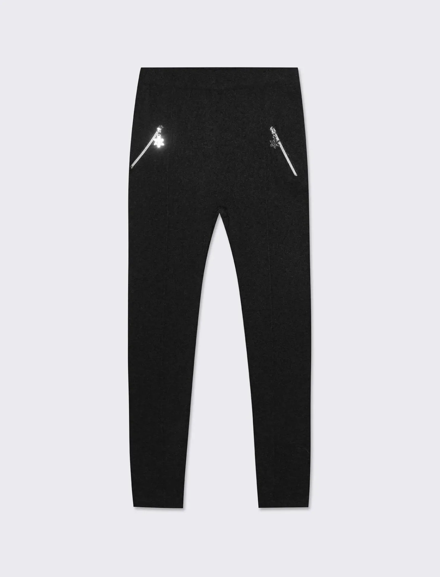 Leggings caldo in tessuto elastico da bambina con zip sul davanti e puller a forma di stella di ghiaccio. Il prodotto è di colore Nero