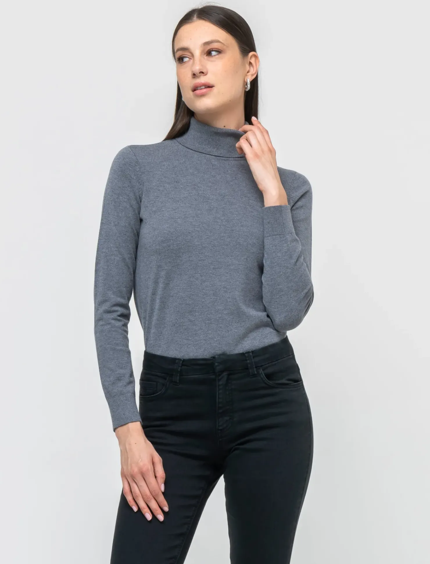 La maglia basic collo alto per donna è un capo versatile e intramontabile, realizzata in maglia fine per garantire una vestibilità confortevole. Questo modello presenta un collo alto che avvolge delicatamente il collo, offrendo calore e stile. Disponibile in una gamma di colori, si adatta facilmente a diverse occasioni, dalla quotidianità agli eventi più eleganti, permettendo di esprimere al meglio la propria personalità. Il prodotto è di colore Antracite melange