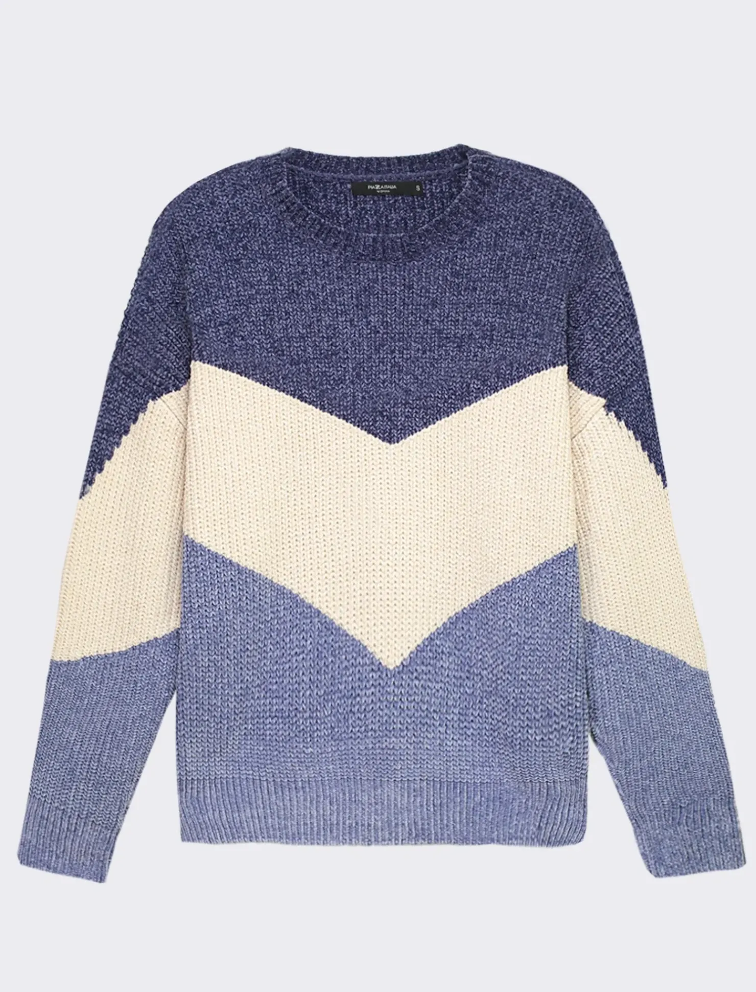 Maglia a righe larghe donna in ciniglia, perfetta per un look casual e trendy. Il modello girocollo con manica a t dona un tocco di originalità, mentre la lavorazione a righe larghe aggiunge un tocco di stile. La vestibilità comoda e i polsi a costine elastiche garantiscono comfort e praticità. Ideale per un outfit versatile e alla moda. Il prodotto è di colore var 3