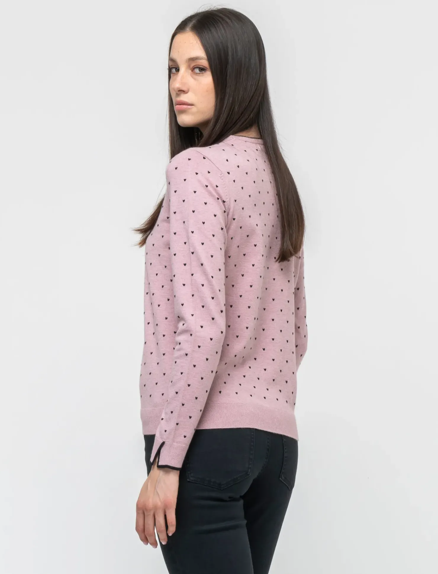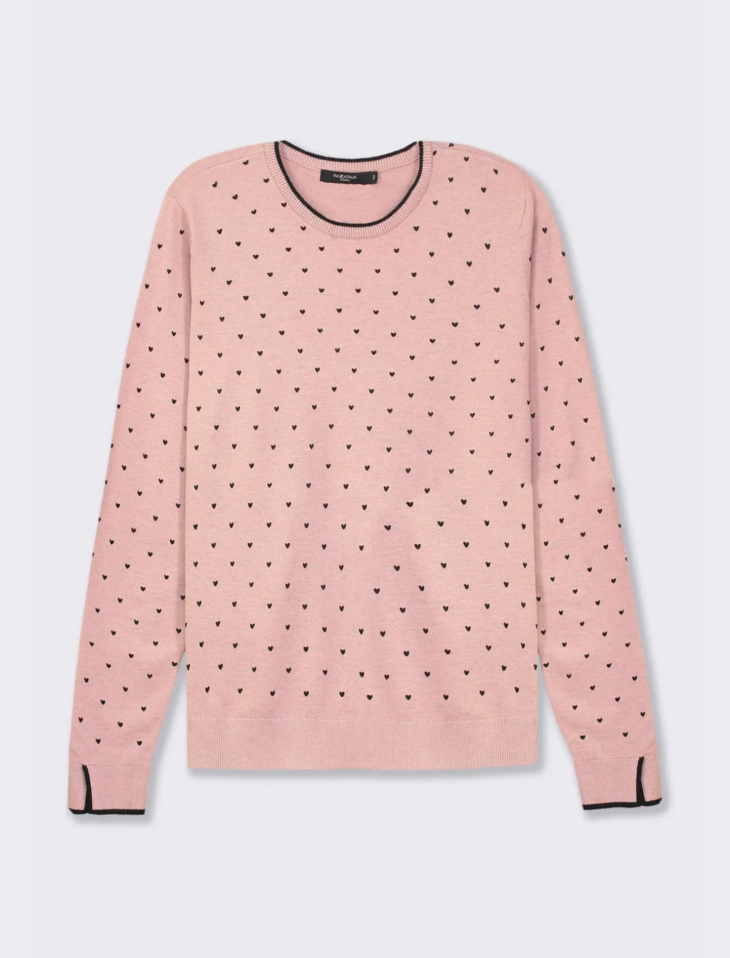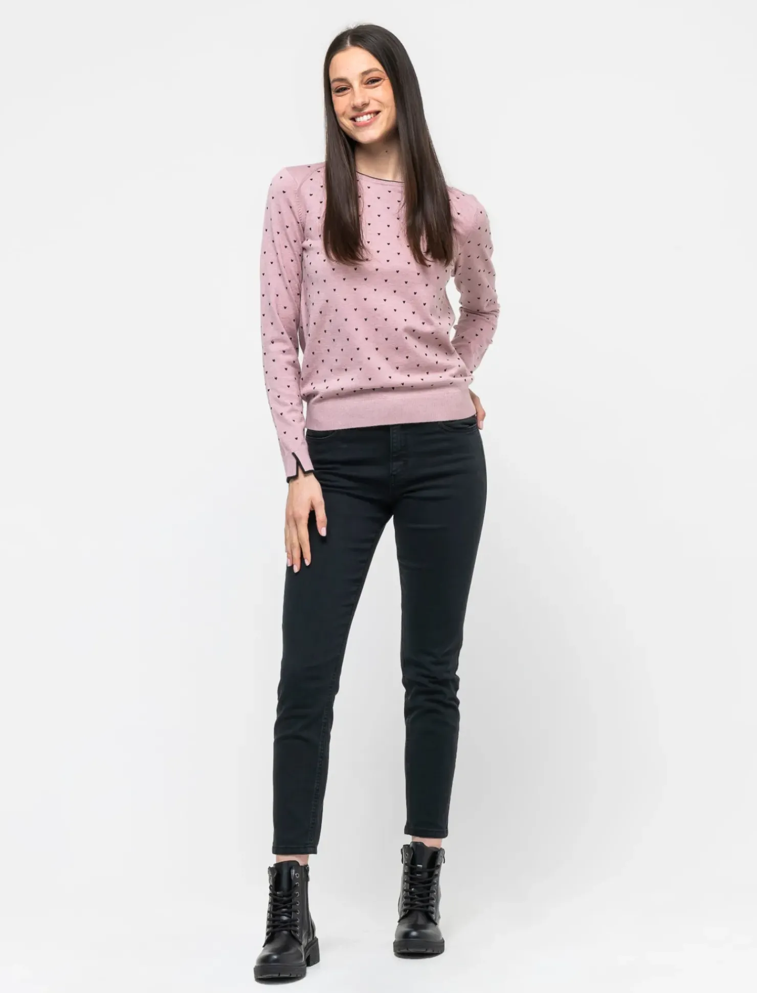 Maglia girocollo donna con motivo floccato stampato, realizzata in morbido filato per garantire comfort e stile. Disponibile in una varietà di colori vivaci e alla moda, perfetta per completare ogni outfit con un tocco di originalità e femminilità. Il prodotto è di colore Rosa antico