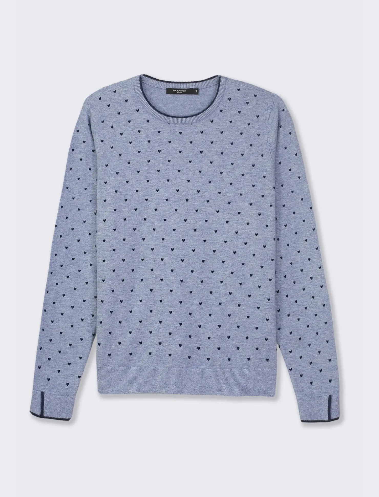 Piazza Italia Maglia a girocollo in filato con motivo floccato stampato – Celeste Azzurro Clearance